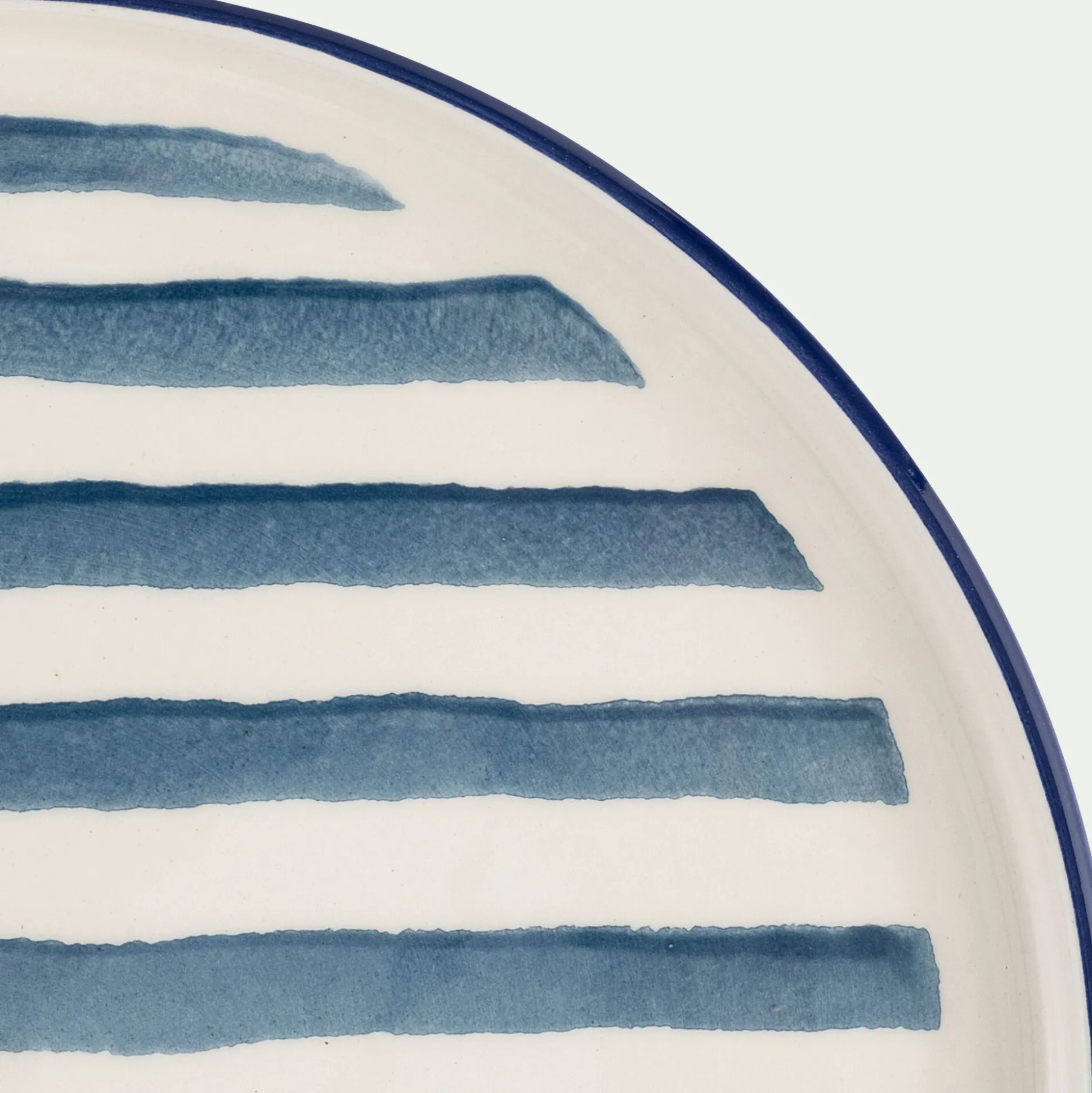 Cette assiette à dessert en céramique blanche, sublimée par un élégant motif marin à rayures peint à la main, allie avec finesse simplicité et sophistication. Solide et conçue pour un usage quotidien, elle est également facile à entretenir grâce à sa compatibilité avec le lave-vaisselle. Fabriquée en Turquie, elle incarne un savoir-faire unique empreint de tradition.
