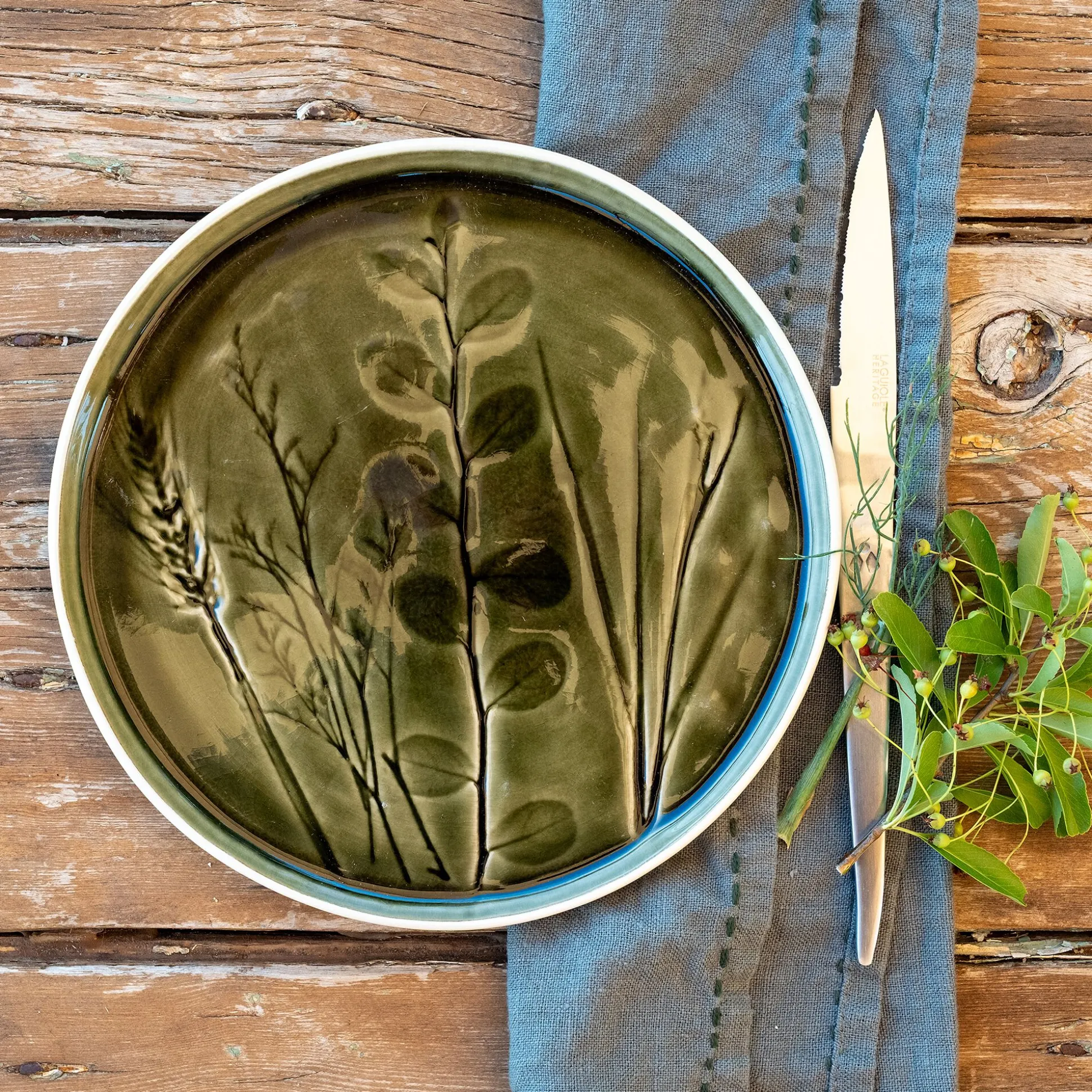 L’assiette à dessert Fleole de 20 cm en vert avocado séduit par sa délicatesse et son esprit bucolique. Réalisée en grès, elle présente de jolies impressions végétales qui rappellent la poésie de la nature. Sa teinte douce et naturelle s’harmonise parfaitement avec une table élégante et champêtre.