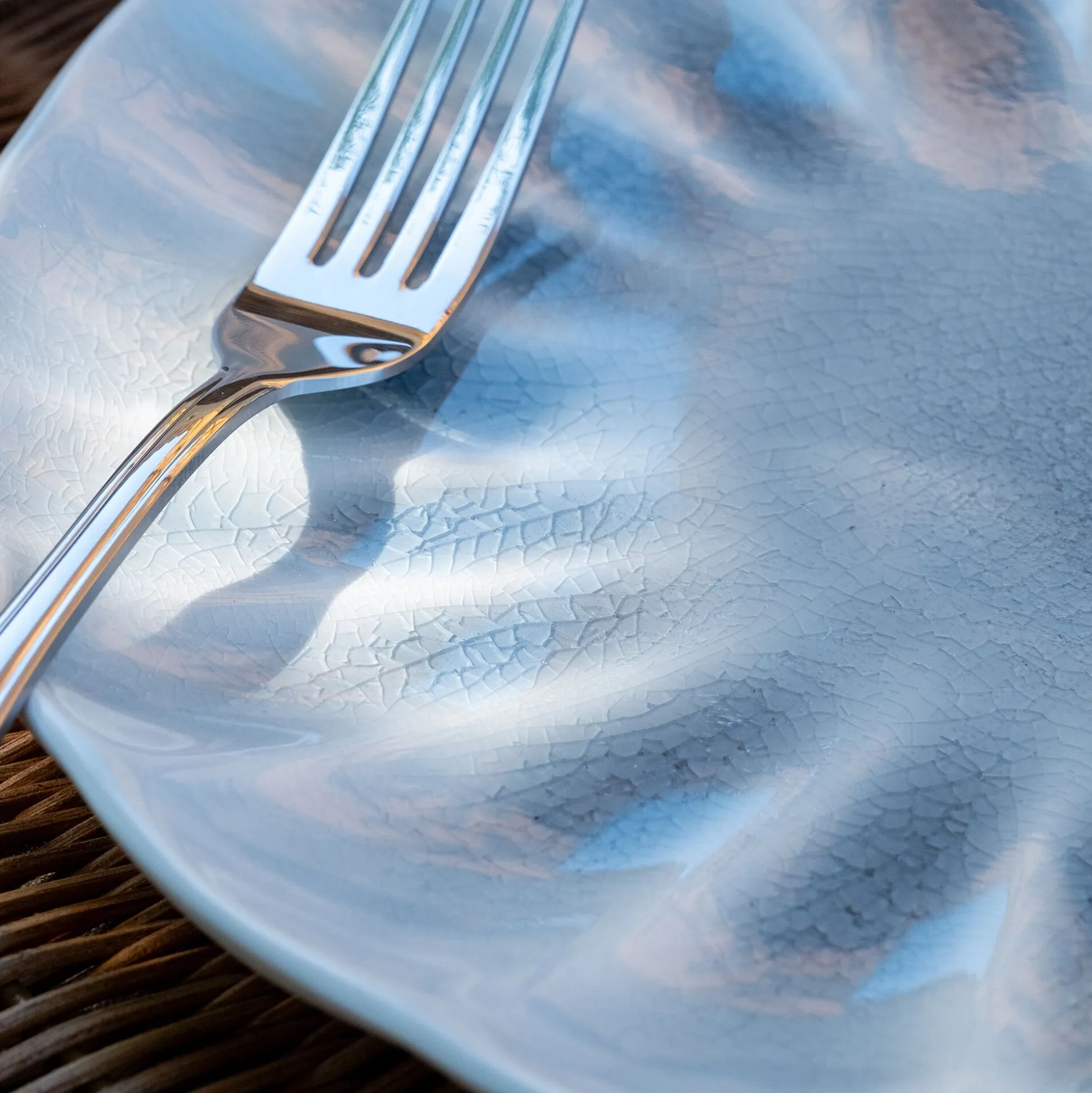 L’assiette à dessert Giulia séduit par sa délicatesse et ses nuances poétiques. Confectionnée en grès bleu, elle présente une bordure légèrement ondulée, comme une corolle de fleur, qui fait subtilement varier les teintes. D’un diamètre de 21 cm, cette petite assiette est idéale pour les desserts, les entrées ou une petite pause gourmande. Un joli mélange d’élégance et de naturel pour embellir chaque instant à table.