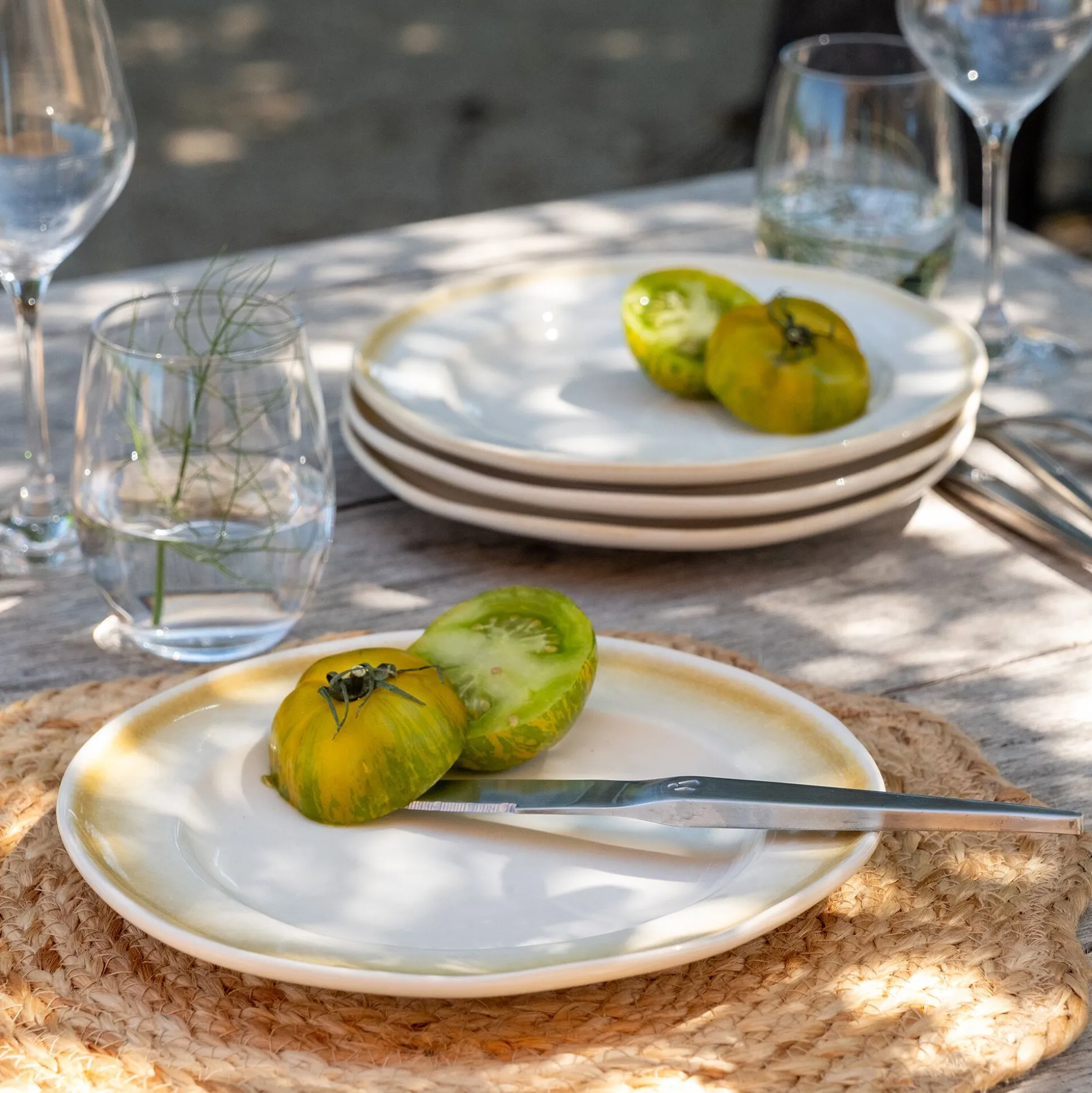 L’assiette à dessert Miel apporte une touche ensoleillée à la table. En grès blanc, elle se distingue par un liseré jaune doré peint à la main, qui souligne délicatement sa bordure. Ce détail lumineux évoque la douceur du miel et donne tout son charme à cette pièce de 21,5 cm de diamètre. Idéale pour les desserts, les goûters ou les entrées, elle est fabriquée au Portugal avec le soin des belles matières.