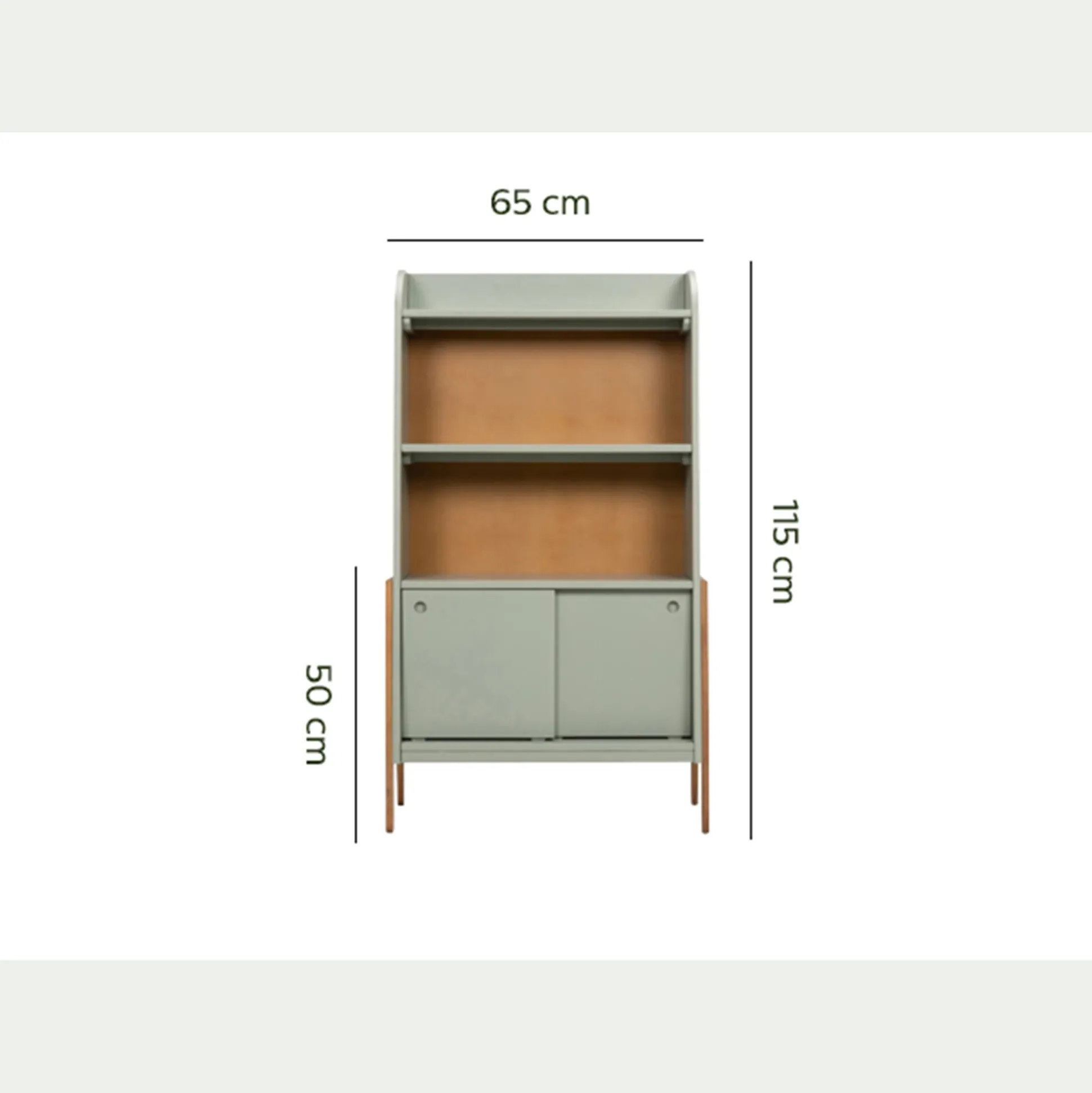 Spécialement conçue pour les enfants, la bibliothèque Raphaël permet de faire de l’ordre dans la chambre à coucher de votre bambin. Ici dans un beau coloris vert olivier, elle apportera une note naturelle de caractère à la décoration de la pièce.