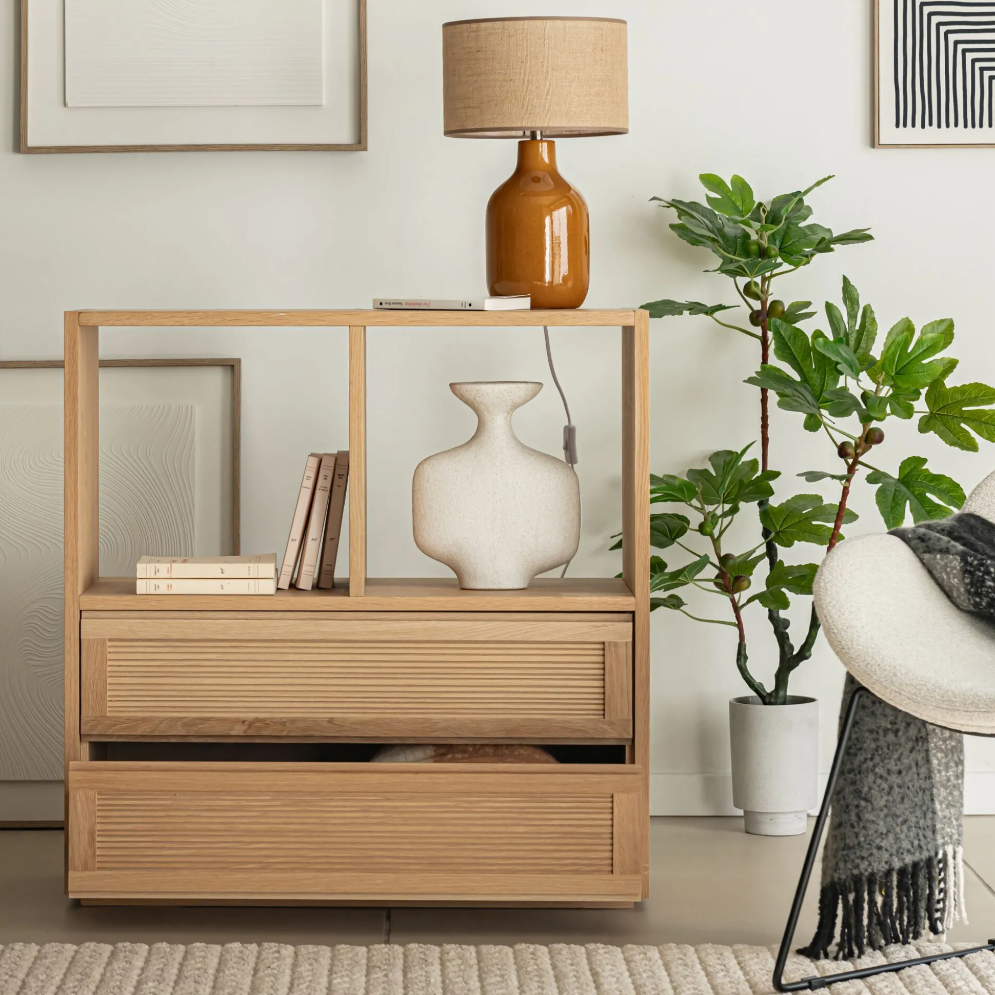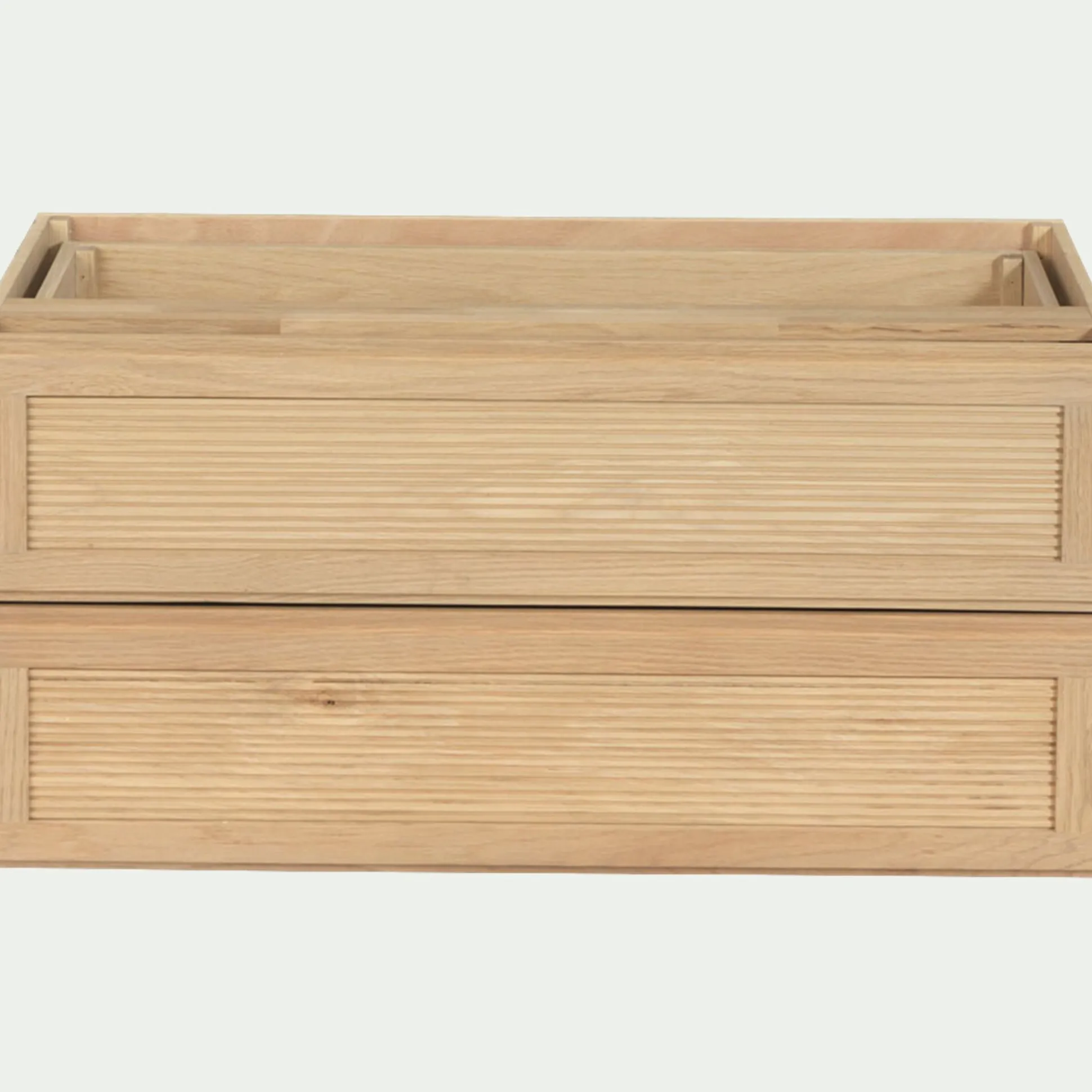 Ce bloc de grands 2 tiroirs en chêne se place dans votre composition pour ranger en toute discrétion. Cette gamme de meubles de salon se module au gré de vos besoins grâce à ses structures positionnables à la verticale ou à l’horizontale, et se personnalise avec ses portes, tiroirs et piètements.