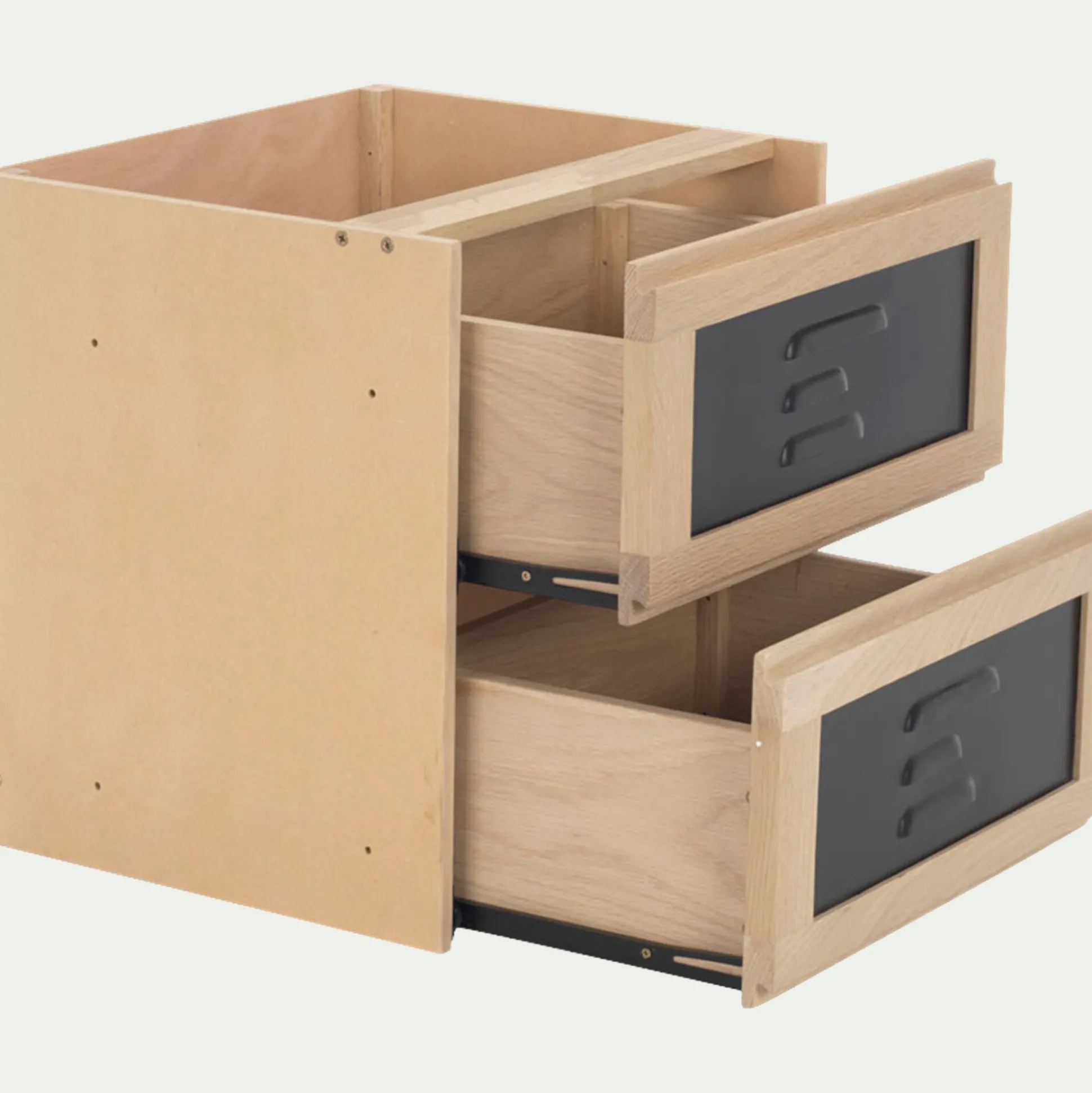 Ce bloc de 2 tiroirs en métal se place dans votre composition pour ranger en toute discrétion. Cette gamme de meubles de salon se module au gré de vos besoins grâce à ses structures positionnables à la verticale ou à l’horizontale, et se personnalise avec ses portes, tiroirs et piètements.
