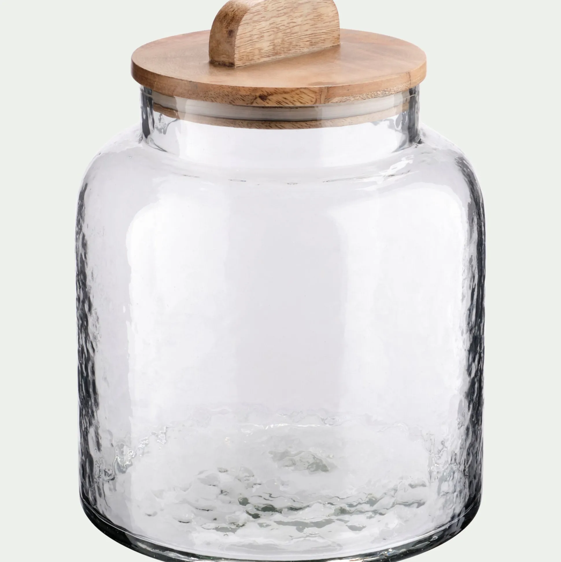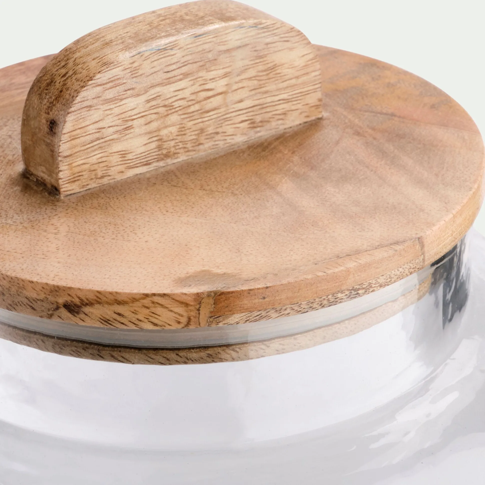 Sublimez votre espace avec le bocal de conservation Bloca. Simple et élégant, cet ustensile intègre la cuisine et se rend utile au quotidien tout en apportant une touche déco à la pièce. Confectionné en verre, ce bocal transparent s’accompagne d’un couvercle en bois de manguier. Ainsi, il permet de stocker vos différents aliments, aussi bien au frigo que dans vos placards. Fruits secs et autres légumineuses trouvent leur place dans ce bocal cylindrique, prêts à être cuisinés et dégustés.