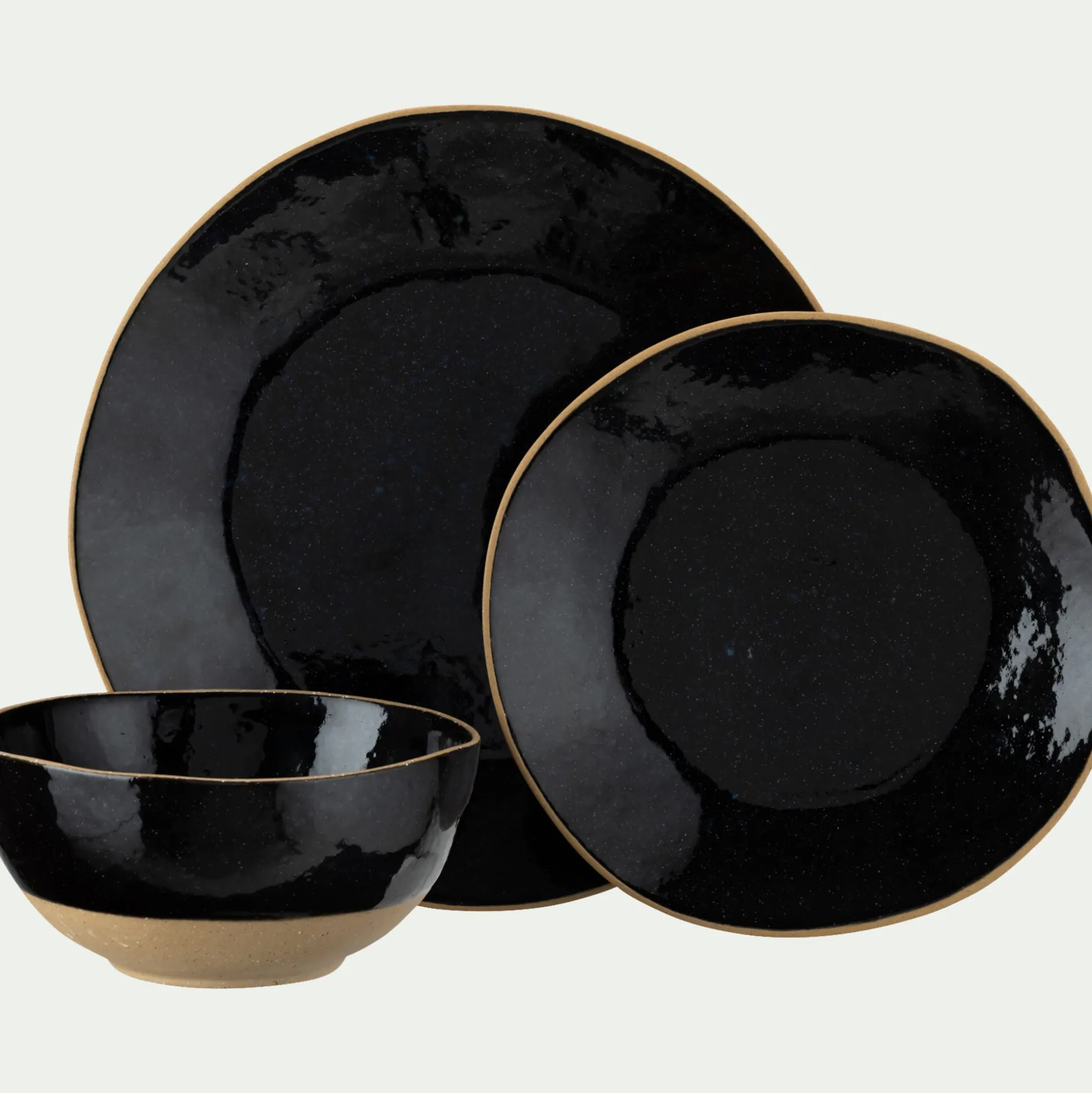 Dégustez votre boisson de petit-déjeuner, un potage ou encore une salade de fruits dans ce joli bol en grès. La terre est maniée pour offrir un rendu brut où les bords irréguliers témoignent de l’authenticité de cette pièce. Confectionné au Portugal à partir d’argile recyclée, ce bol en céramique s’inscrit dans une démarche durable. Contemporain, il arbore un engobe noir moucheté au fini brillant, associé à une base naturelle. Un mélange des styles dont on raffole pour sublimer n’importe quelle table.