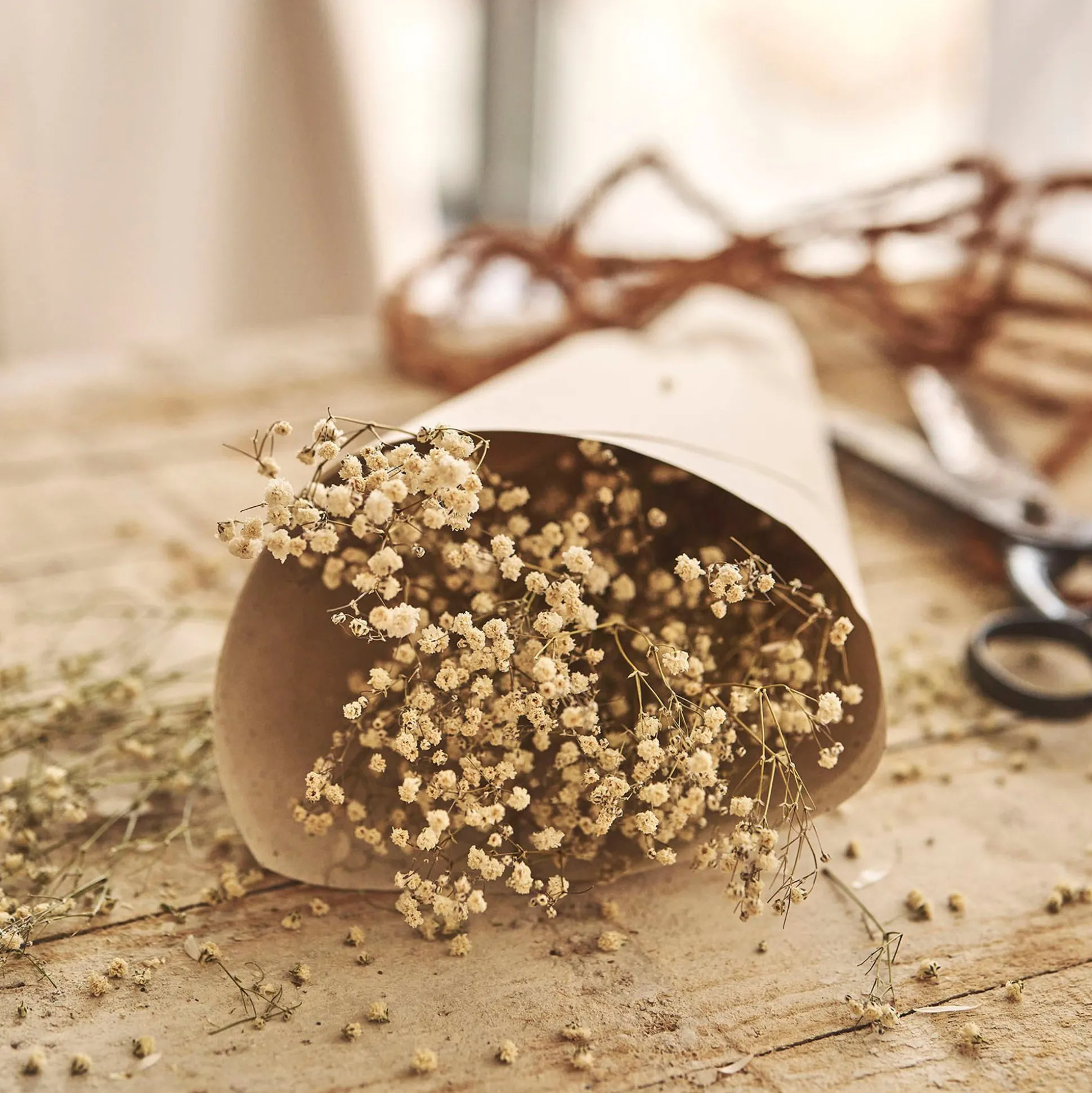 Ajoutez une touche de délicatesse à votre intérieur grâce à cette botte de gypsophile séchée. Cette merveille florale évoque la pureté et l’élégance. Ses fines tiges sont ornées de toute petites fleurs blanches qui font écho à sa délicatesse dans un tout harmonieux poétique. Elles apporteront grâce et légèreté à n’importe quelle composition florale. A disposer seule dans un vase ou pour faire des créations manuelles telles que des herbiers ou des couronnes de fleurs séchées, cette botte décore avec subtilité.