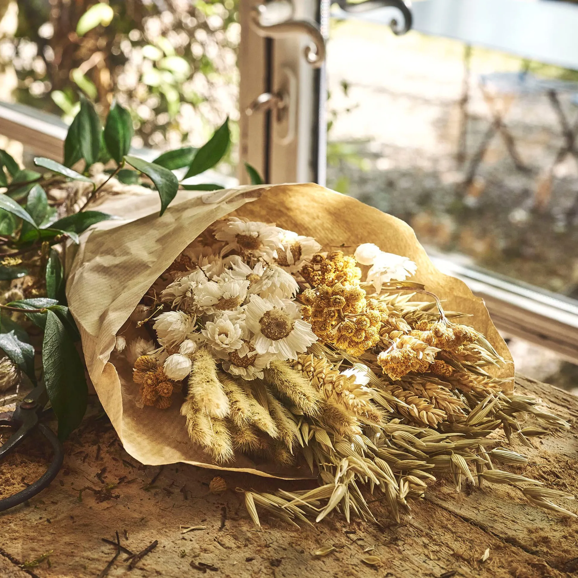 Bouquet de fleurs séchées 35cm – jaune