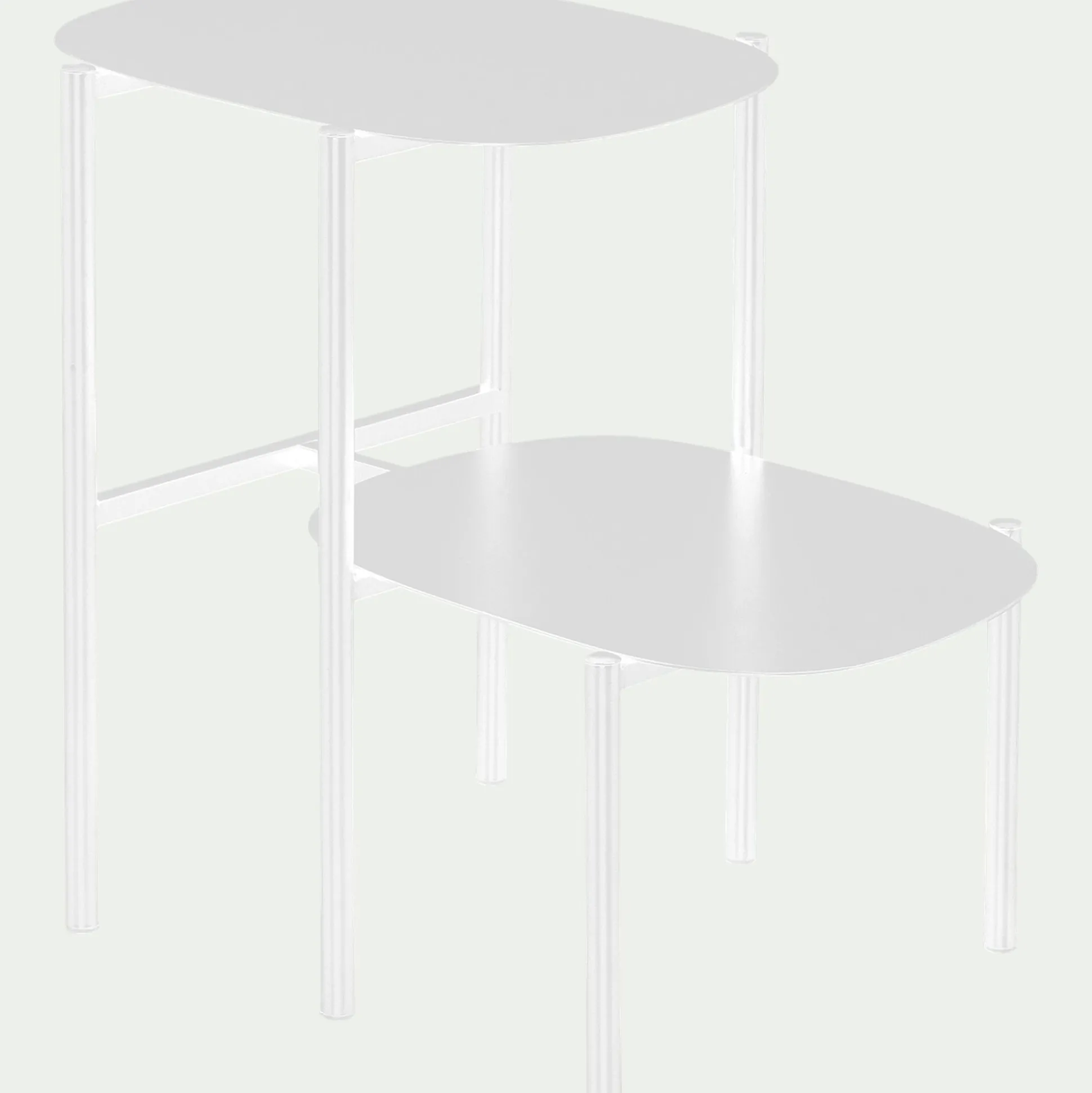 Ce bout de canapé tire son originalité de sa forme. En effet, cette petite table présente deux plateaux ovales à deux hauteurs différentes. L’un est très bas, à environ 25 cm du sol, alors que le second plateau le surplombe à 50 cm du sol. Cette table double s’installe dans le salon, près du canapé. Elle accueille vos livres, vos télécommandes ainsi que les autres accessoires du salon. Ce bout de canapé en métal arbore un coloris blanc, brillant qui s’accorde à toutes les couleurs de canapé. Une petit meuble lumineux qui habille la pièce.