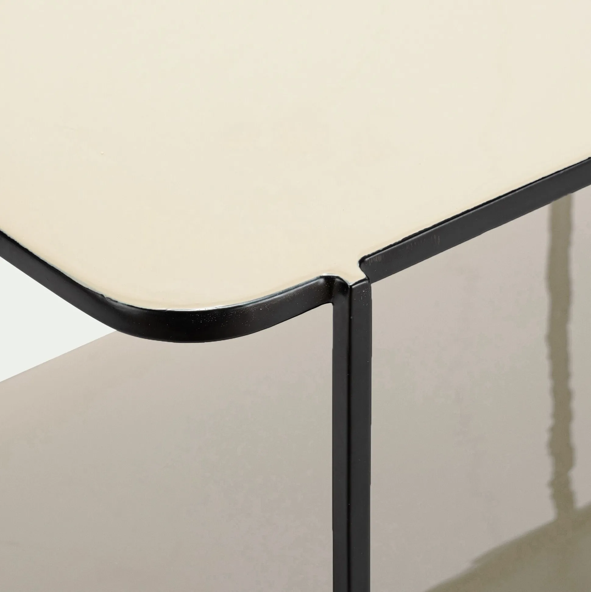 Donnez une touche de modernité et de fonctionnalité à votre intérieur avec ce bout de canapé en acier. Avec ses élégants piètements noirs et ses trois plateaux blancs écru, cette petite table d’appoint apporte une allure contemporaine et épurée à votre salon. Pratique et esthétique, ce bout de canapé est constitué de trois plateaux qui vous permettent d’exposer vos objets décoratifs, livres ou plantes, tout en optimisant l’espace de votre pièce. Polyvalent, il est l’accessoire idéal pour créer un coin à la fois fonctionnel et au charme inégalable près de votre canapé.