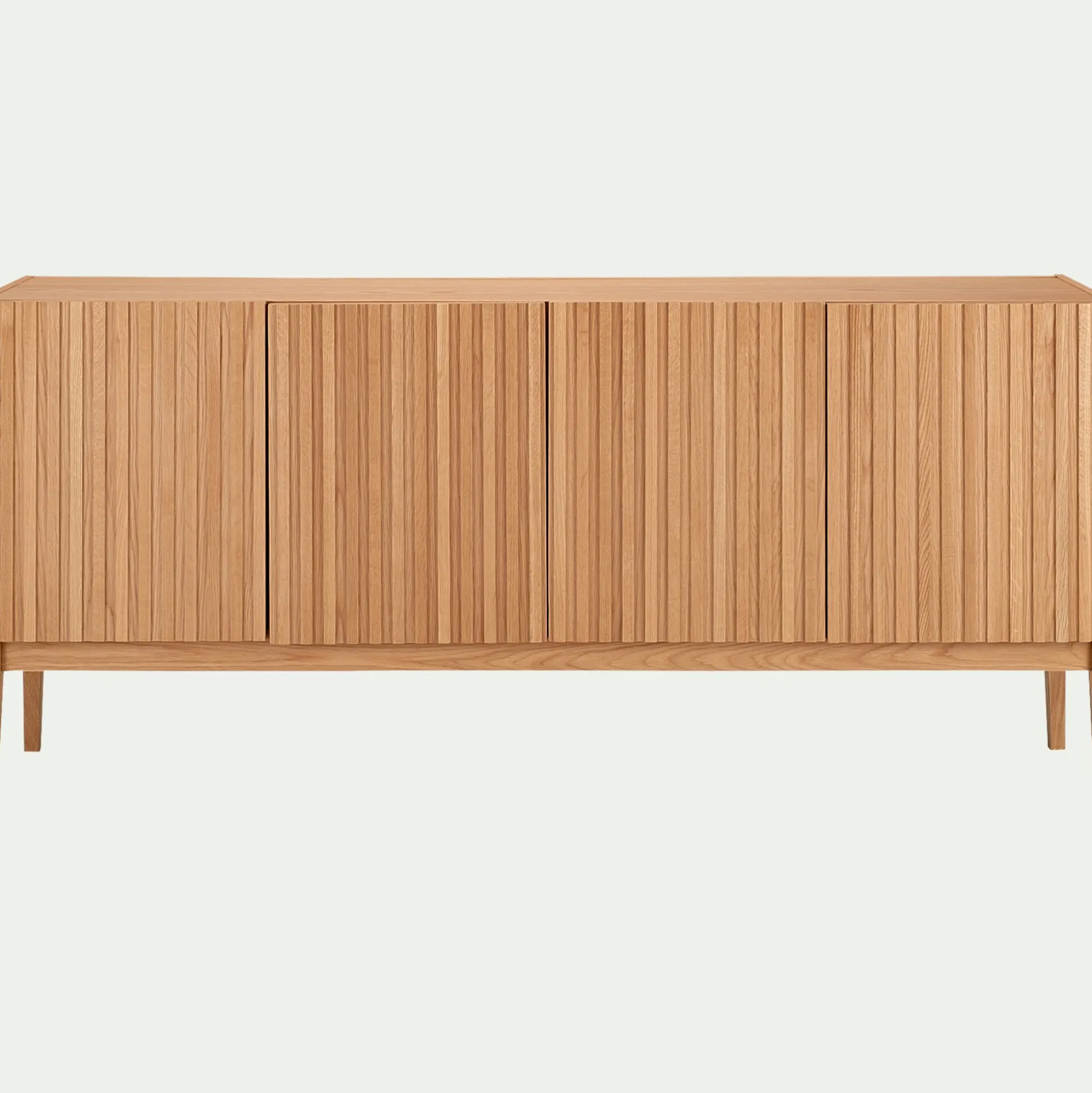 Le buffet Feve se joue des codes établis. Son mélange entre style urbain et authentique, mêlant graphisme et modularité en fait un meuble audacieux. Le placage chêne de sa structure lui donne un aspect chaleureux et authentique. Quatre portes en bois battantes laissent apparaître de spacieux rangements dans lesquels vous pourrez disposer vos livres, vos appareils électroniques et autres objets du quotidien. Un meuble de salon au design épuré qui s’intégrera dans un intérieur où les matières nobles et naturelles ont la part belle.