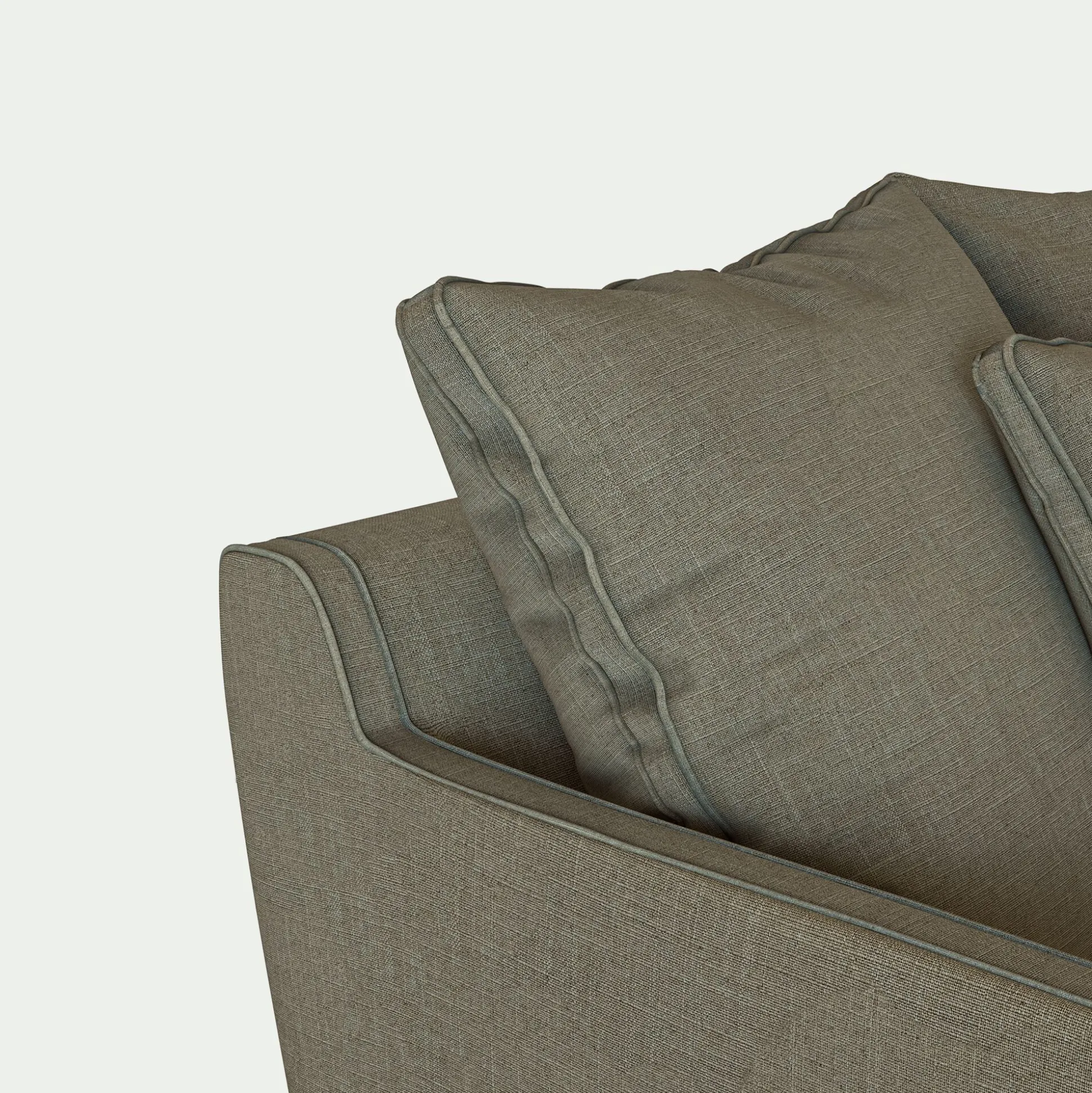 Assise et dossier : Garnissage Assise en mousse polyuréthane densité 30 kg/m3 et couette en fibre polyester. Coussin de dossier en plumes d’oies et fibres polyester.