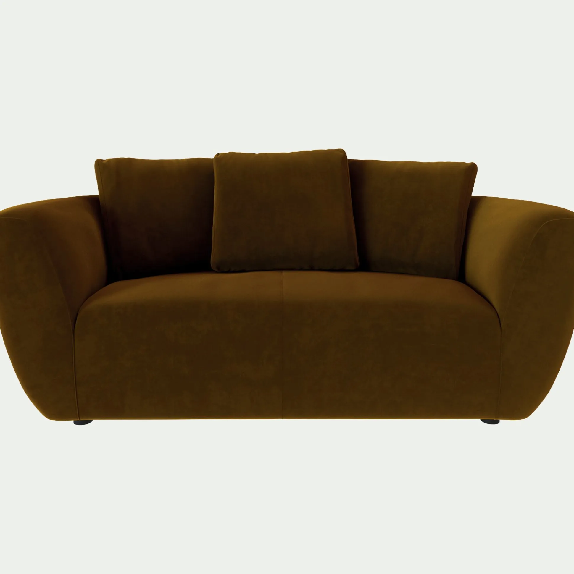 Avec son revêtement en tissu bronze, ce canapé 2 places conjugue douceur et élégance. Son tissu velours met en valeur chaque courbe, apportant une touche raffinée à l’espace. Le bronze, teinte chaude et réconfortante, trouve facilement sa place dans une décoration intemporelle, qu’elle soit contemporaine, bohème ou vintage. Son assise moelleuse invite à la détente, tandis que son dossier partiellement garni de plumes d’oie enveloppe de confort. Pensé pour durer, ce canapé fixe repose sur une structure en bois certifié FSC. Ses coussins de dos déhoussables facilitent l’entretien. Une pièce fabriquée en Italie, où design et confort s’unissent avec subtilité.