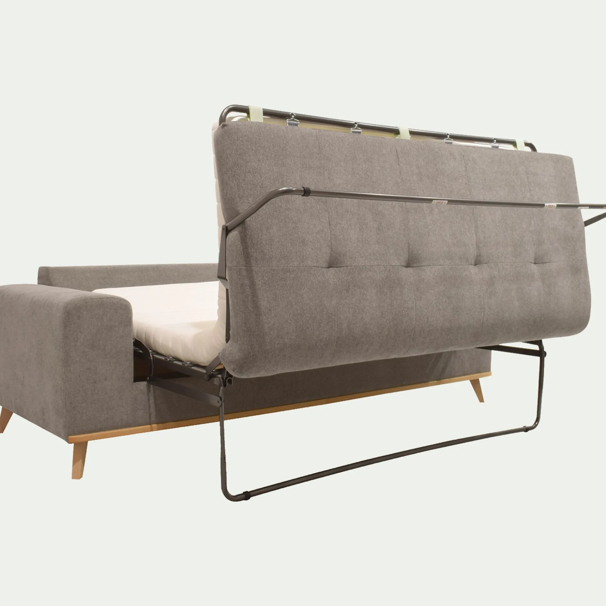 Le canapé convertible Capia allie confort, style et praticité. De jour, il offre une assise spacieuse pour 3 personnes. Ce canapé est alors revêtu d’un tissu storm taupe, profond et élégant. Son tissage apporte douceur et résistance, parfait pour une utilisation quotidienne. Le soir, il se transforme en un couchage d’appoint de 140×188 cm grâce à un mécanisme d’ouverture rapide et facile, intégrant un sommier et un matelas pour un confort optimal. Son design repose sur une structure en pin massif et des pieds en hêtre massif, gage de solidité et de durabilité. Les coussins de dos déhoussables facilitent l’entretien. Une fabrication française qui conjugue esthétique et fonctionnalité.