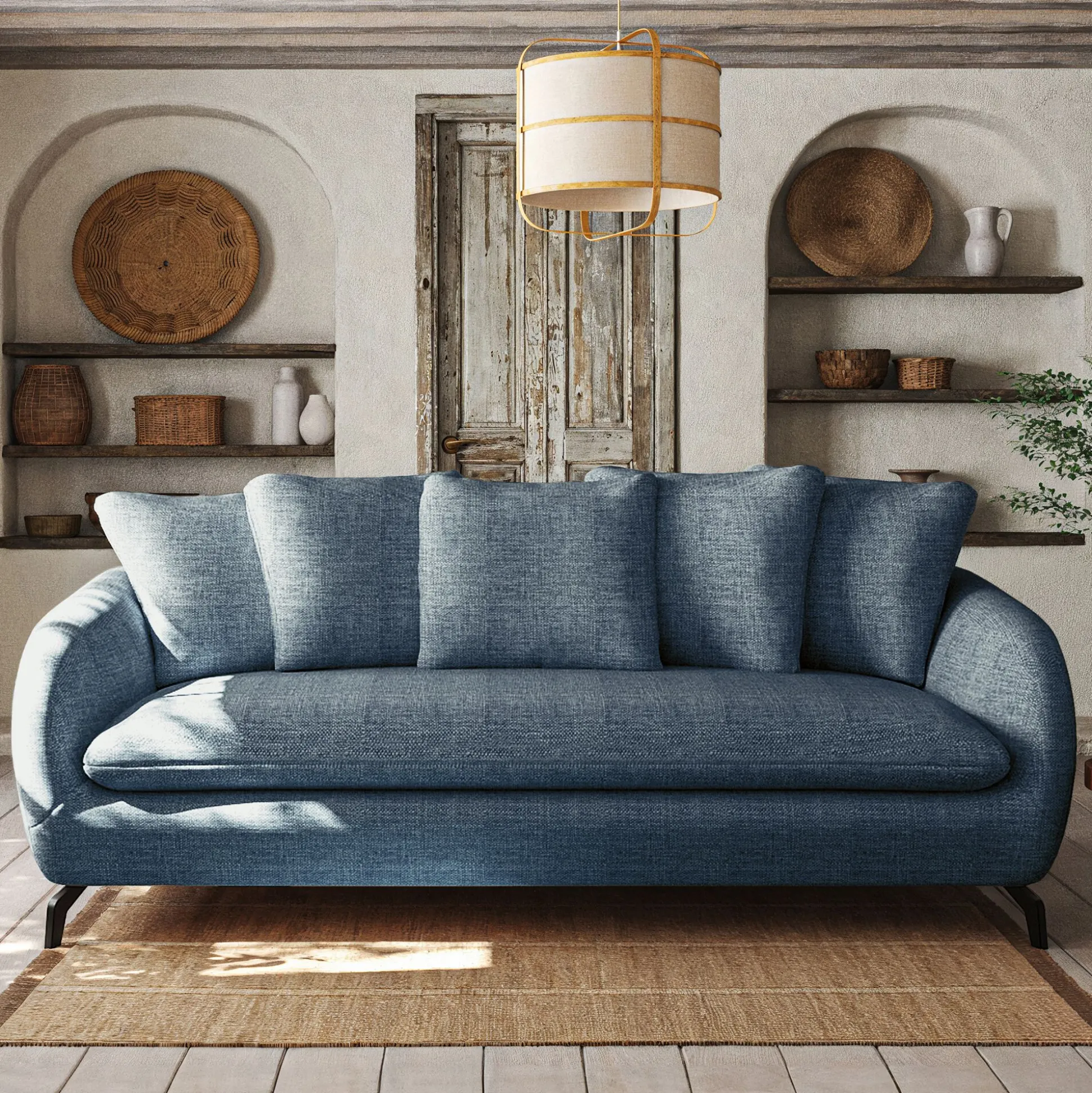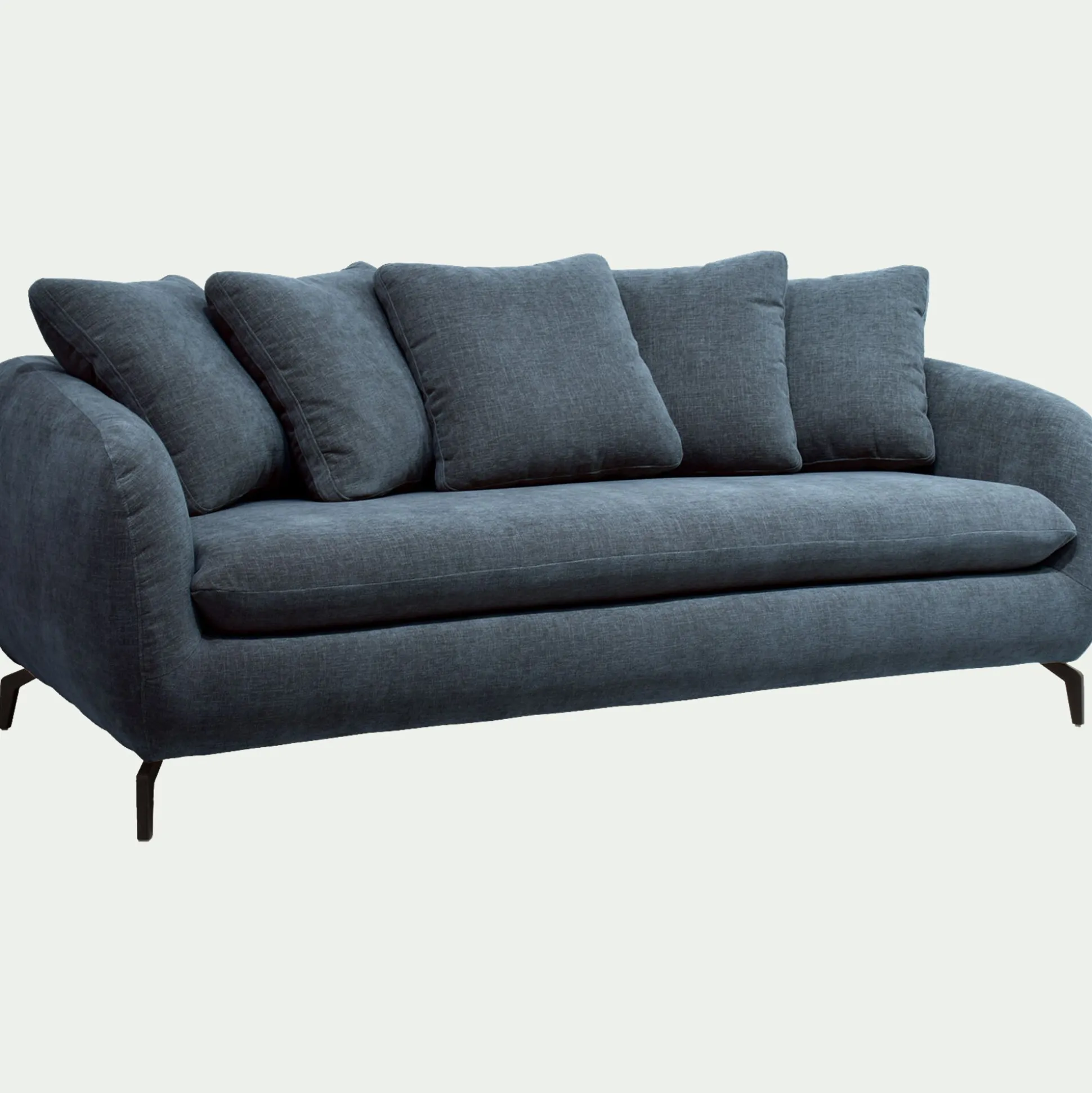 Un joli canapé convertible en tissu pour profiter agréablement de votre salon. Un look contemporain et accueillant, sublimé par un piétement original en acier noir. Vous apprécierez la forme du dossier et des accoudoirs qui vous offrent un maintien optimal de votre dos pour un confort d’assise exceptionnel. Un canapé fabriqué en France, dans des ateliers proches de la ville de Bourge, qui incarne l’excellence du savoir-faire français. Un coloris bleu qui apporte une note lumineuse et tendance à votre déco de salon.