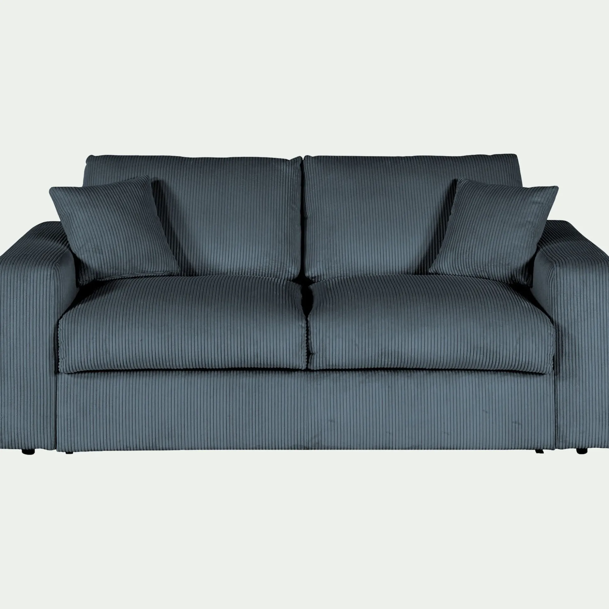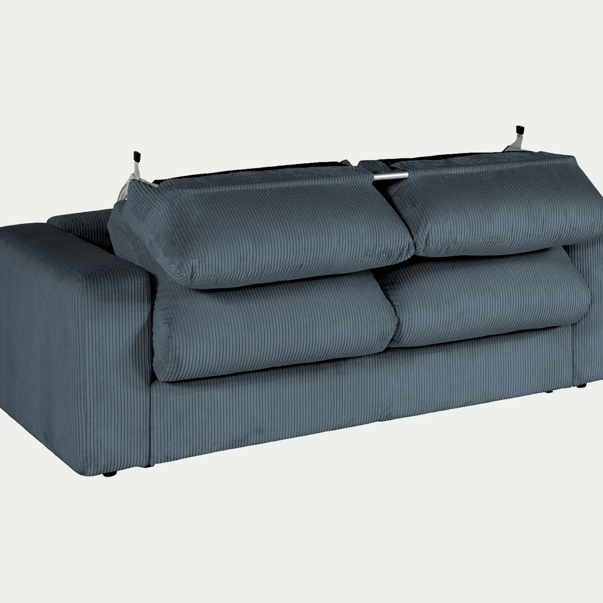 Le canapé Piuma est idéal pour se prélasser dans votre salon. Avec ses grandes assises, ce canapé 3 places convertible en velours côtelé vous offre un confort exceptionnel. Il vous permet de vous détendre au coeur de coussins moelleux qui vous font sentir dans un nuage de douceur, une sensation renforcée par son tissu délicat. Vous pourrez ainsi recevoir famille et amis à partager des soirées conviviales lors d’un moment apaisant et les inviter à dormir grâce à son couchage quotidien. Pour les plus petits appartements, il pourra vous faire gagner de la place grâce à son double usage. Ce canapé convertible de couleur bleu apporte également une touche design moderne et élégante à votre salon. Son velours côtelé donne un côté cocooning qui vous permet de transformer votre pièce en un espace chaleureux. Piuma fait ainsi rimer confort avec esthétisme et élégance.