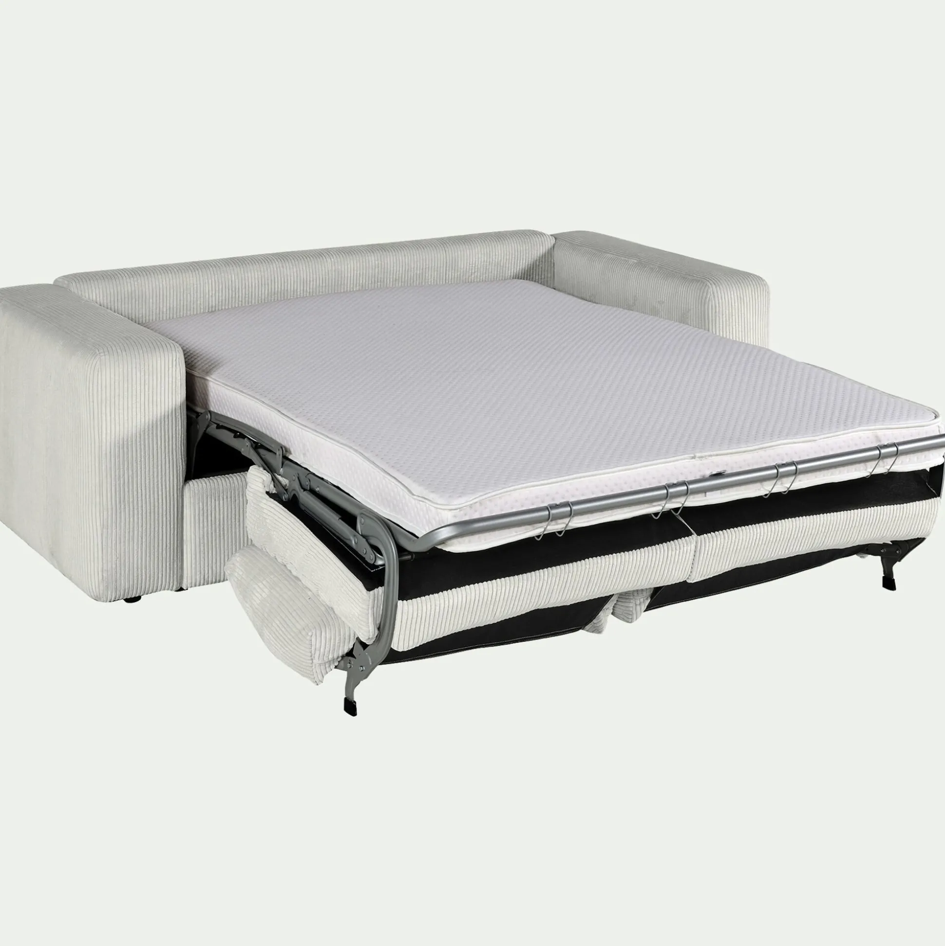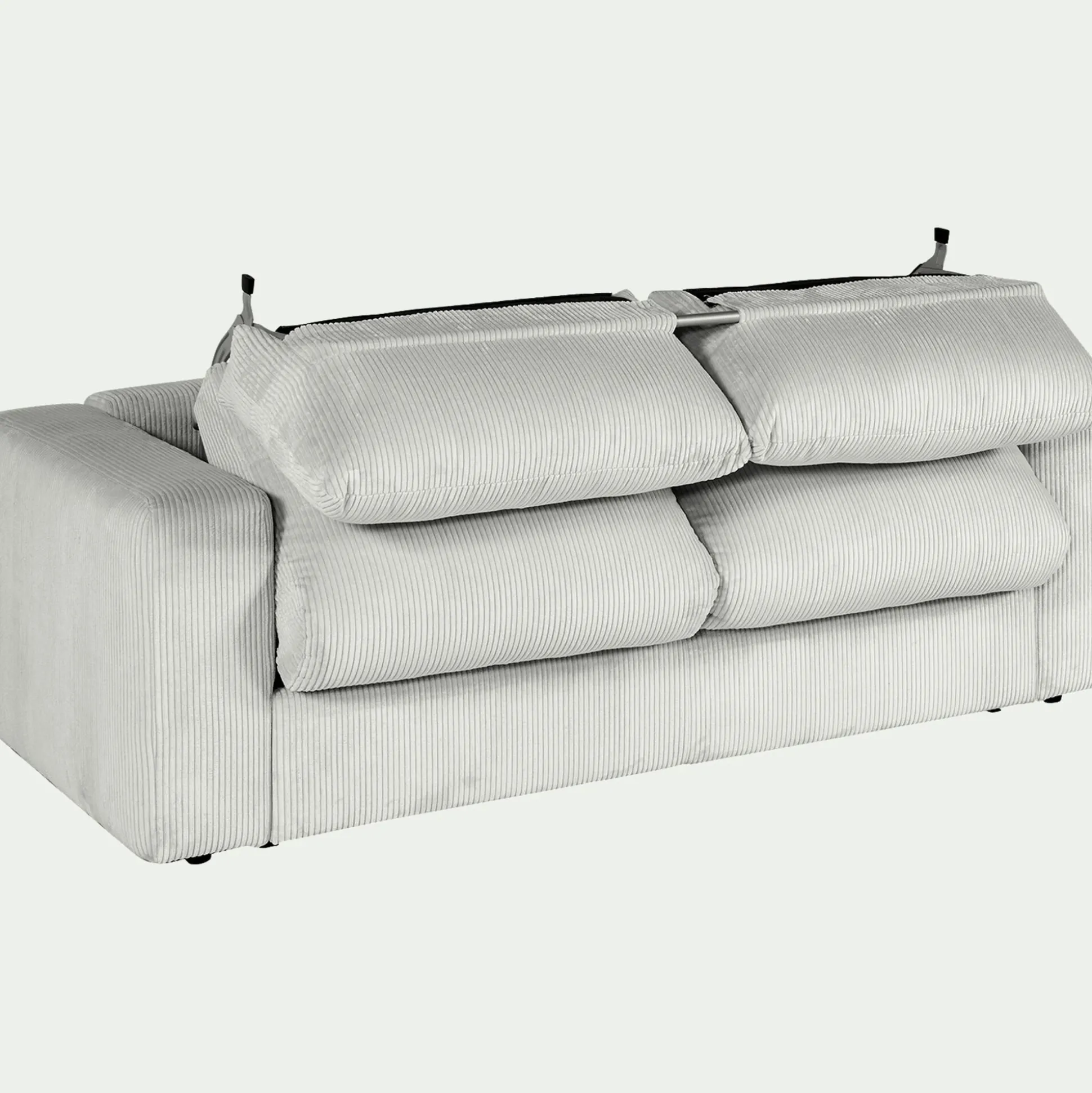Le canapé Piuma est idéal pour se prélasser dans votre salon. Avec ses grandes assises, ce canapé 3 places convertible en velours côtelé vous offre un confort exceptionnel. Il vous permet de vous détendre au coeur de coussins moelleux qui vous font sentir dans un nuage de douceur, une sensation renforcée par son tissu délicat. Vous pourrez ainsi recevoir famille et amis à partager des soirées conviviales lors d’un moment apaisant et les inviter à dormir grâce à son couchage quotidien. Pour les plus petits appartements, il pourra vous faire gagner de la place grâce à son double usage. Ce canapé convertible de couleur grise apporte également une touche design moderne et élégante à votre salon. Son velours côtelé donne un côté cocooning qui vous permet de transformer votre pièce en un espace chaleureux. Piuma fait ainsi rimer confort avec esthétisme et élégance.