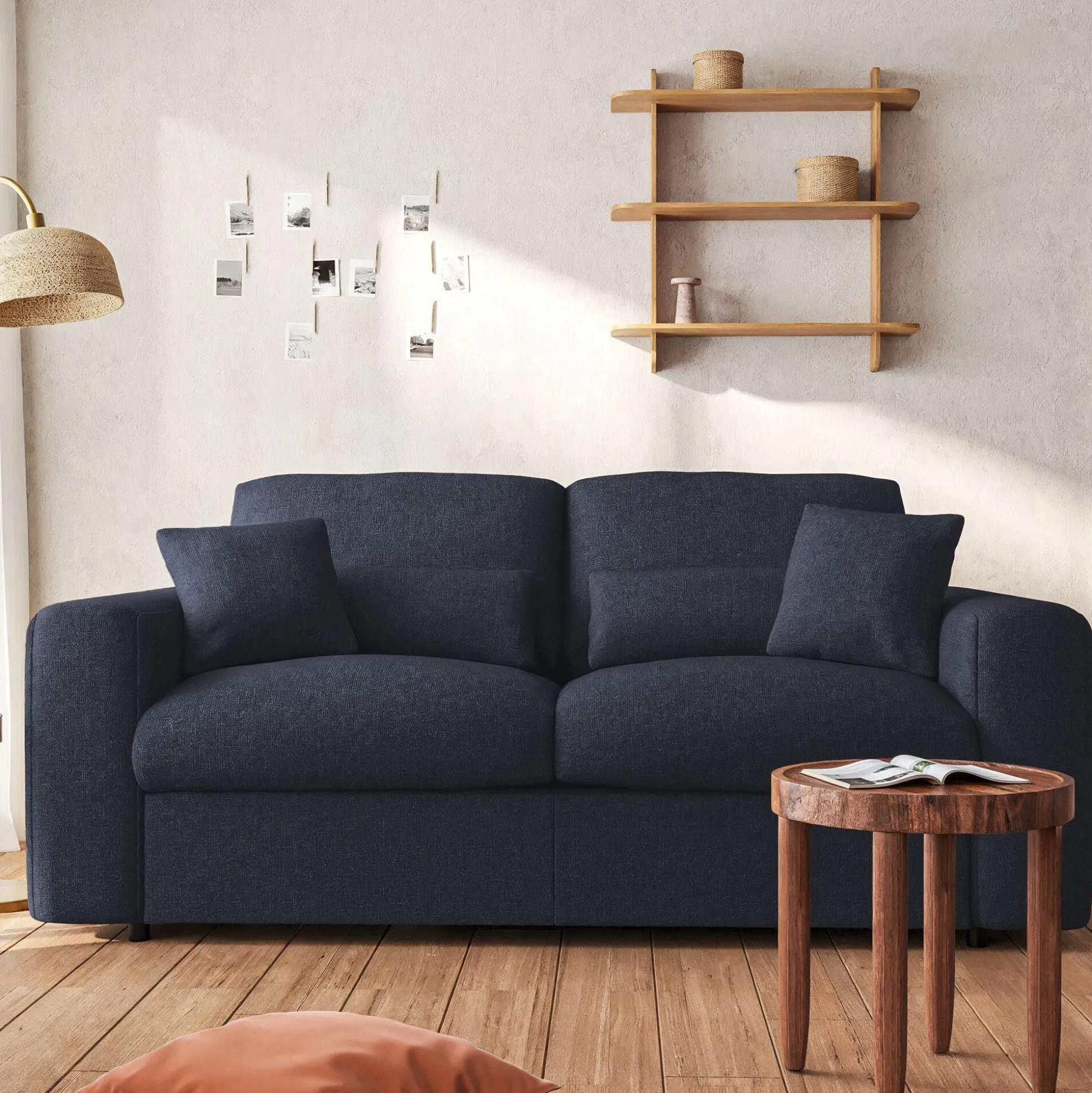 Le canapé Piuma est idéal pour se prélasser dans votre salon. Avec ses grandes assises, ce canapé 3 places fixe en tissu chenille vous offre un confort exceptionnel. Il vous permet de vous détendre au coeur de coussins moelleux qui vous font sentir dans un nuage de douceur, une sensation renforcée par son tissu délicat. Vous pourrez ainsi recevoir famille et amis à partager des soirées conviviales lors d’un moment apaisant. Ce canapé fixe de couleur bleu marine apporte également une touche design moderne et élégante à votre salon. Son tissu chenille donne un côté cocooning qui vous permet de transformer votre pièce en un espace chaleureux. Piuma fait ainsi rimer confort avec esthétisme et élégance.