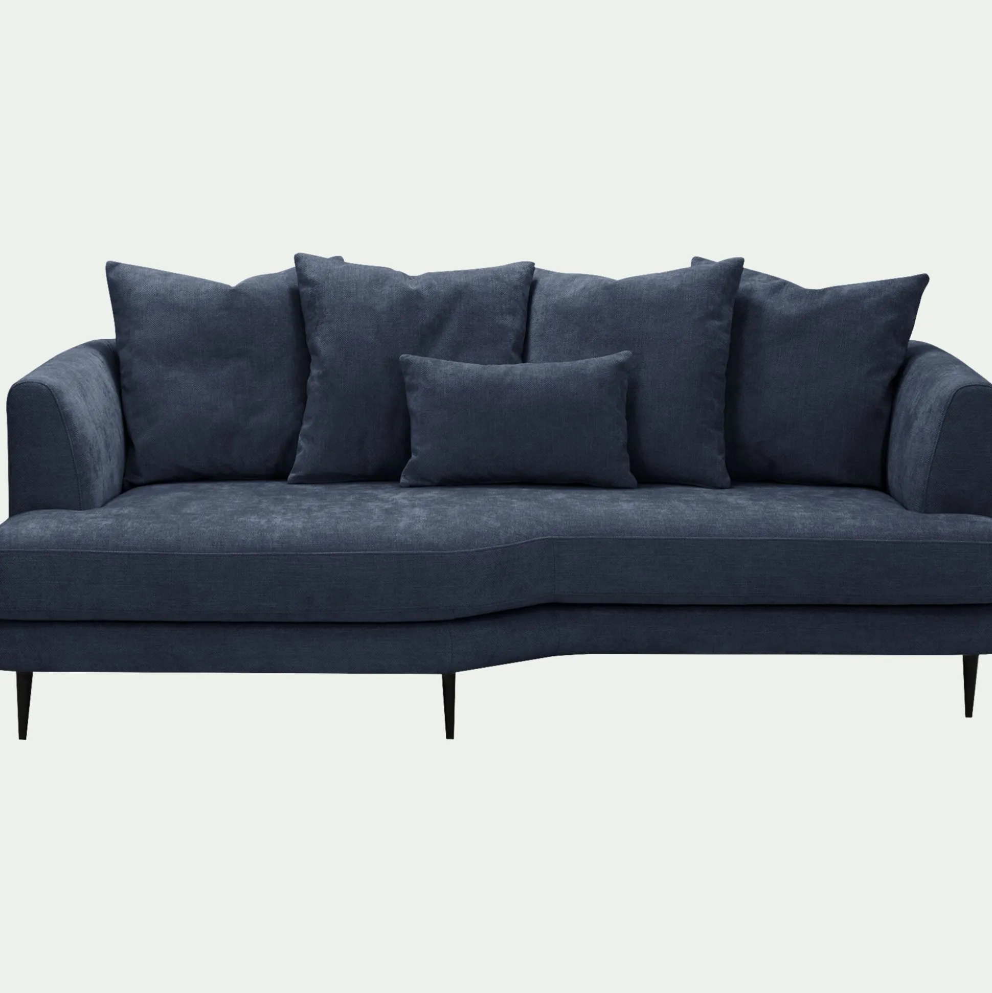 Avec sa découpe originale et asymétrique sur le côté gauche, ce canapé 3 places impose une allure unique et raffinée dans le salon. Son design singulier se marie à l’élégance discrète de son coloris bleu autan, doux et intemporel, pour sublimer la décoration intérieure. Son décroché crée une assise plus profonde, idéale pour savourer des instants de détente dans un confort absolu. À la fois atypique et sophistiqué, ce canapé fixe en tissu devient une pièce maîtresse du séjour et ne manquera pas de séduire les convives par son charme distinctif.