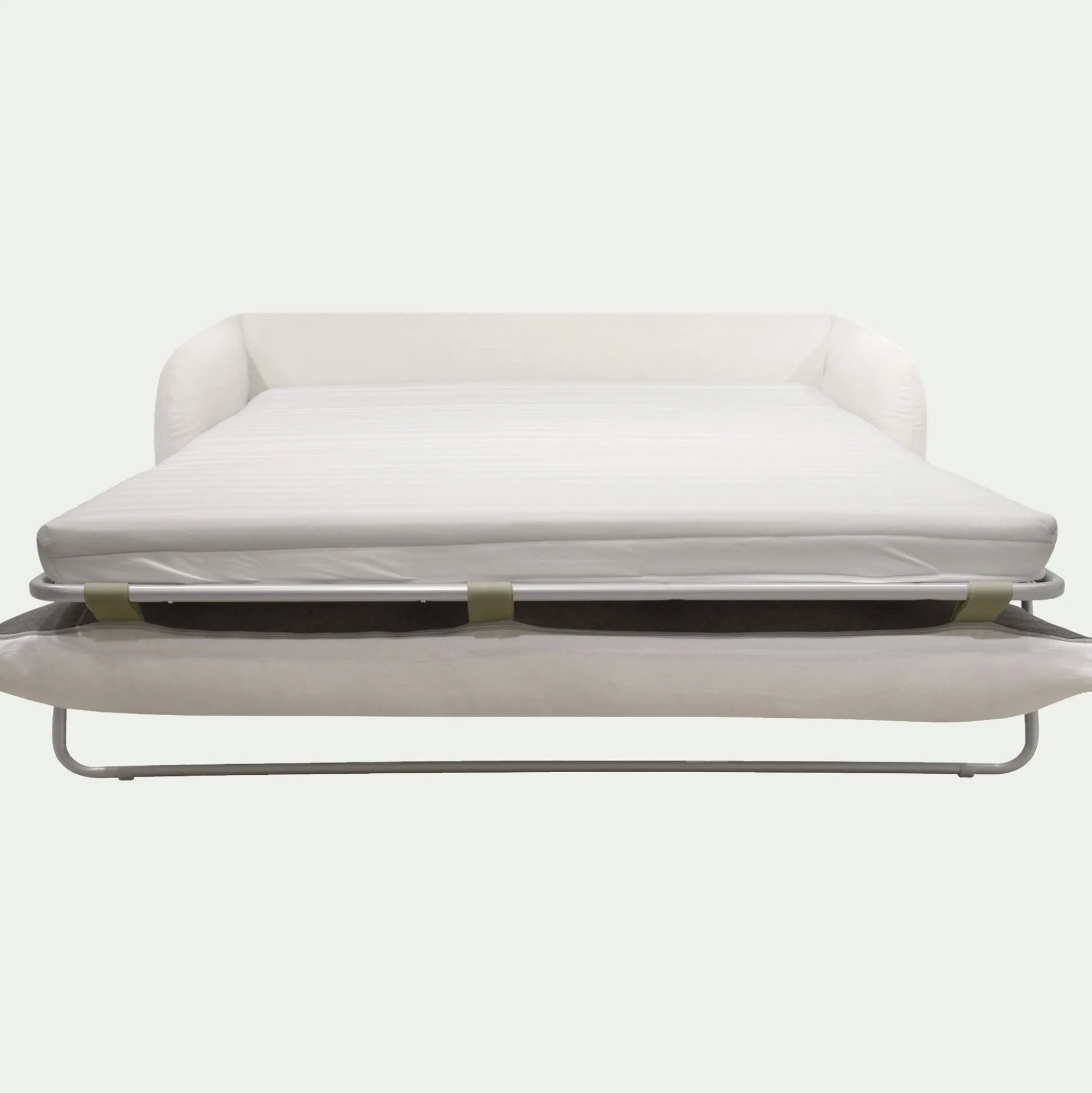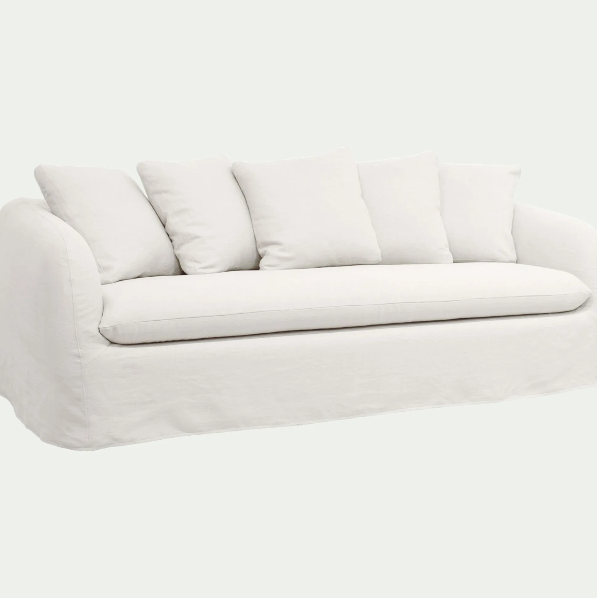 Le canapé Marcel est une ode à la ville de Marseille et à son patrimoine. Son nom fait écho à la provence en rendant hommage à sa culture. Conçu pour 4 personnes, ce canapé au design singulier donne de l’allure à votre salon tout en offrant une grande assise. Ses multiples coussins font de lui un canapé plus douiller et chaleureux. Son tissu en lin, son design en rondeur et sa jupe lui donnent une élégance incontestable. Le lin, un tissu naturel symbole de pureté et de confort, vous offre une douceur qui vous bercera au fil des saisons. Extrêmement résistant et réputé pour ses qualités thermorégulatrices, il vous permettra de vous lover au mieux tout au long des saisons et pendant plusieurs années. Sa fonction convertible dévoile un confortable matelas qui pourra accueillir deux personnes occasionnellement. En lin blanc, ce canapé noble est un éloge à la Méditerranée.