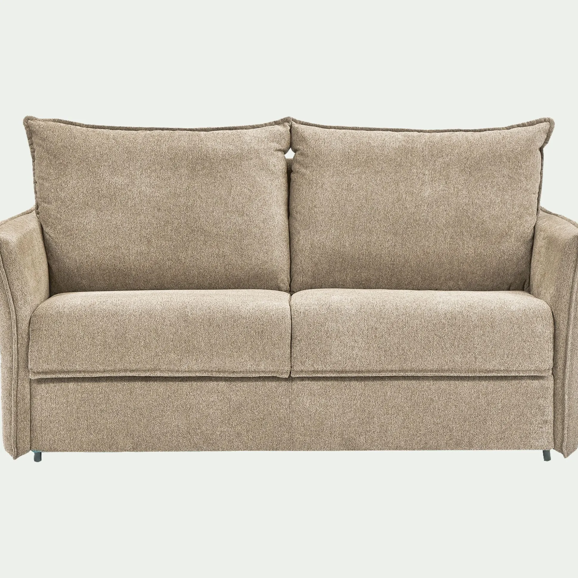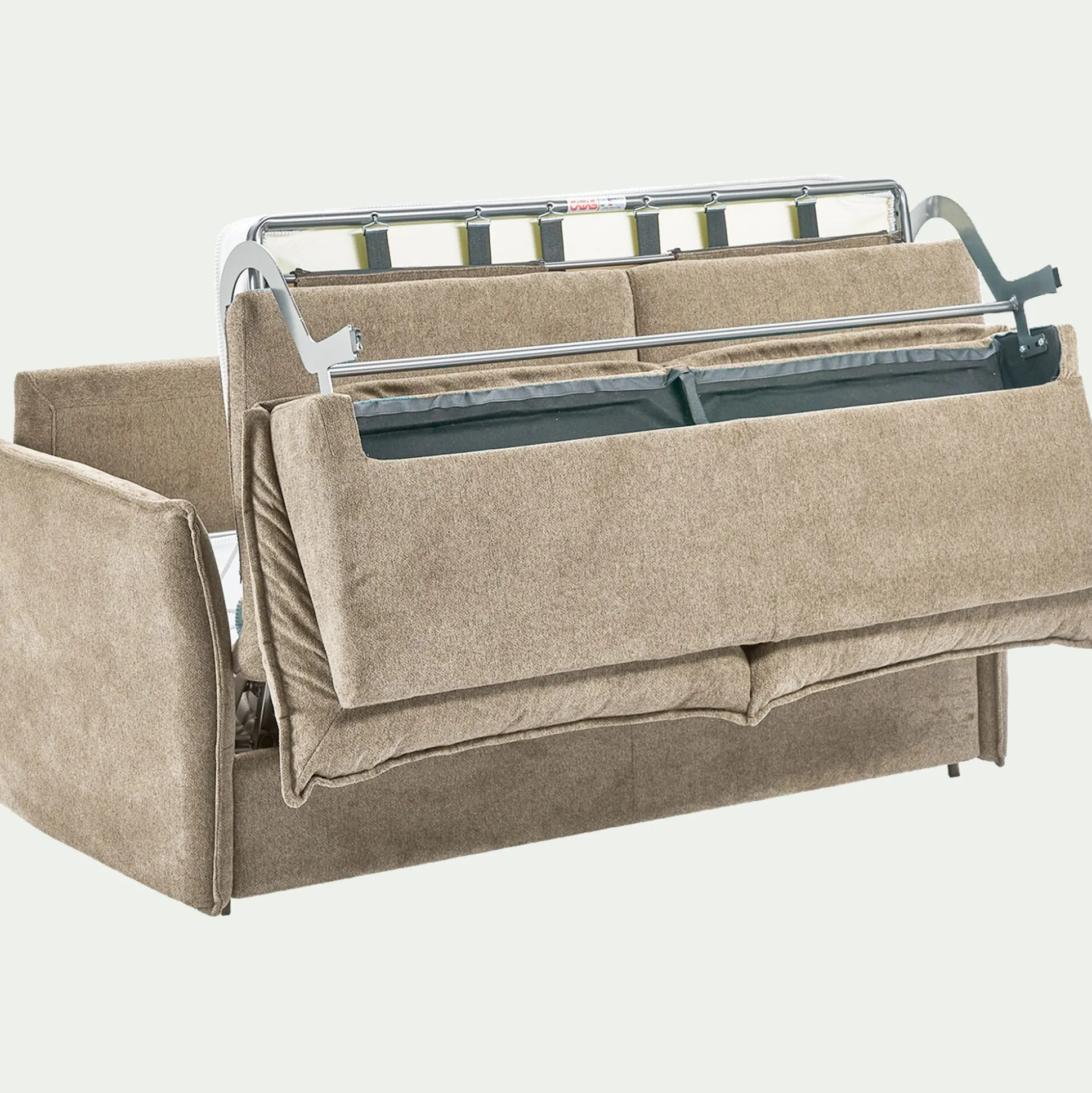 Le canapé Moya offre un soutien optimal adapté à chaque partie du corps. Ce canapé 4 places convertible à la fabrication italienne, confectionné à partir du savoir faire local, vous permet de vous détendre dans une pièce hautement qualitative. Le soir, dépliez votre canapé et transformez-le en un lit au couchage 160×195 cm d’une densité de 35kg/m3 qui vous permettra d’accueillir famille et amis. Très confortable, ce canapé peut servir de couchage quotidien. Son mécanisme métallique vous permet de le déplier en quelques secondes sans enlever ses coussins. Ce canapé en tissu, avec sa couleur beige roucas et son liseré décoratif, apportera de l’élégance à votre salon.