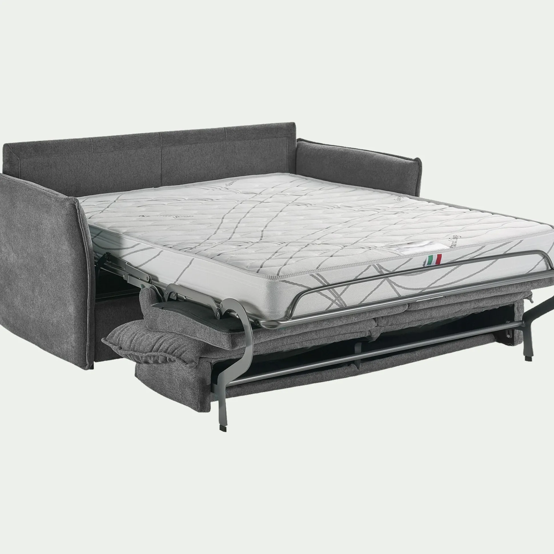 Le canapé Moya offre un soutien optimal adapté à chaque partie du corps. Ce canapé 4 places convertible à la fabrication italienne, confectionné à partir du savoir faire local, vous permet de vous détendre dans une pièce hautement qualitative. Le soir, dépliez votre canapé et transformez-le en un lit au couchage 160×195 cm d’une densité de 35kg/m3 qui vous permettra d’accueillir famille et amis. Très confortable, ce canapé peut servir de couchage quotidien. Son mécanisme métallique vous permet de le déplier en quelques secondes sans enlever ses coussins. Ce canapé en tissu, avec sa couleur gris restanque et son liseré décoratif, apportera de l’élégance à votre salon.