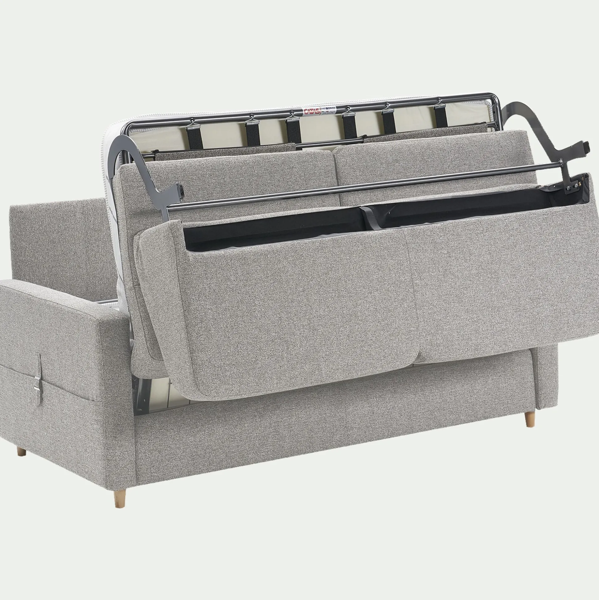 Structure : hêtre massif, panneaux de bois stratifiés et panneaux de particules revêtus en mousse polyester.