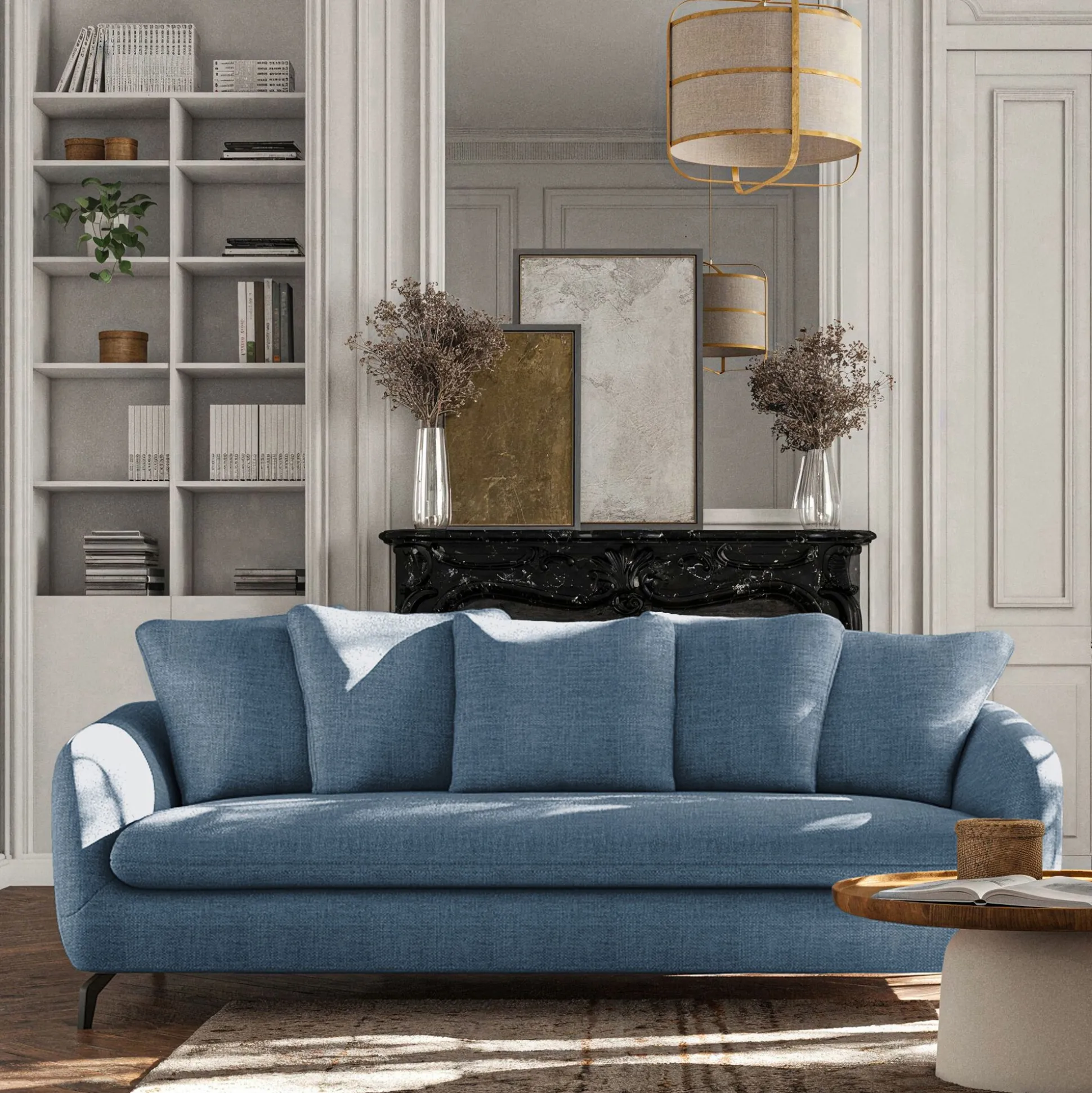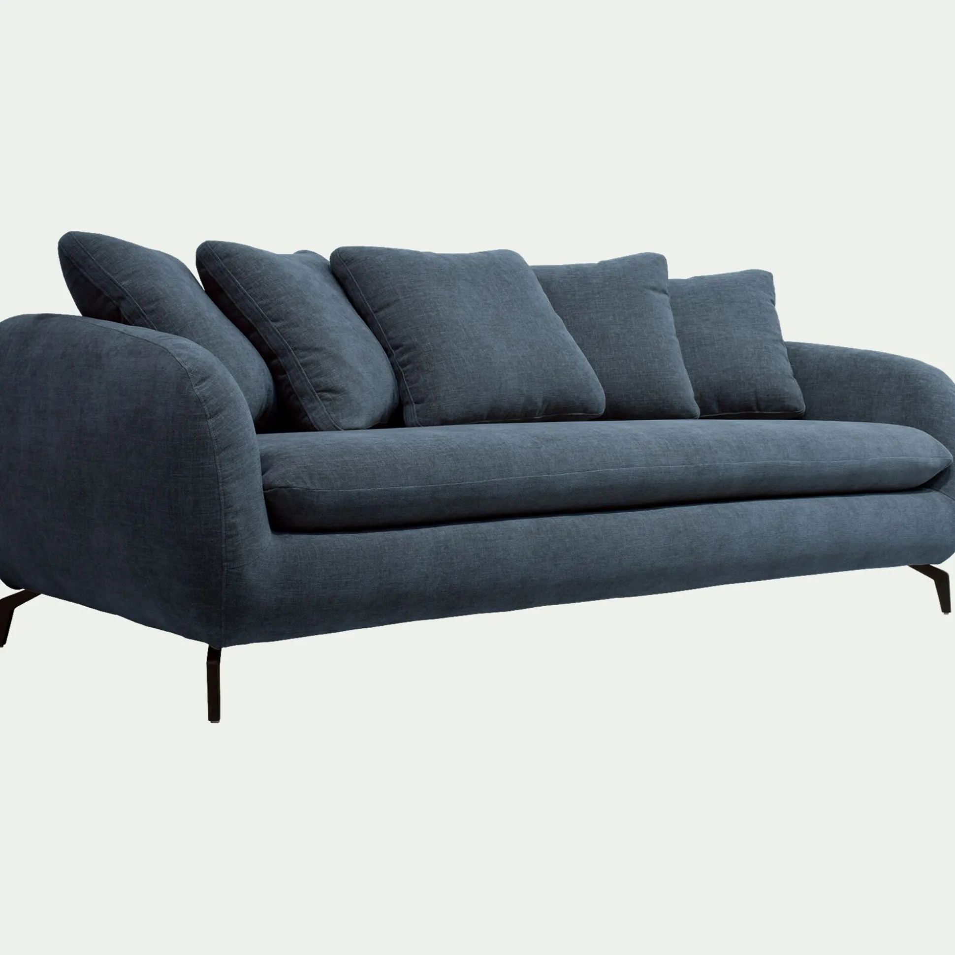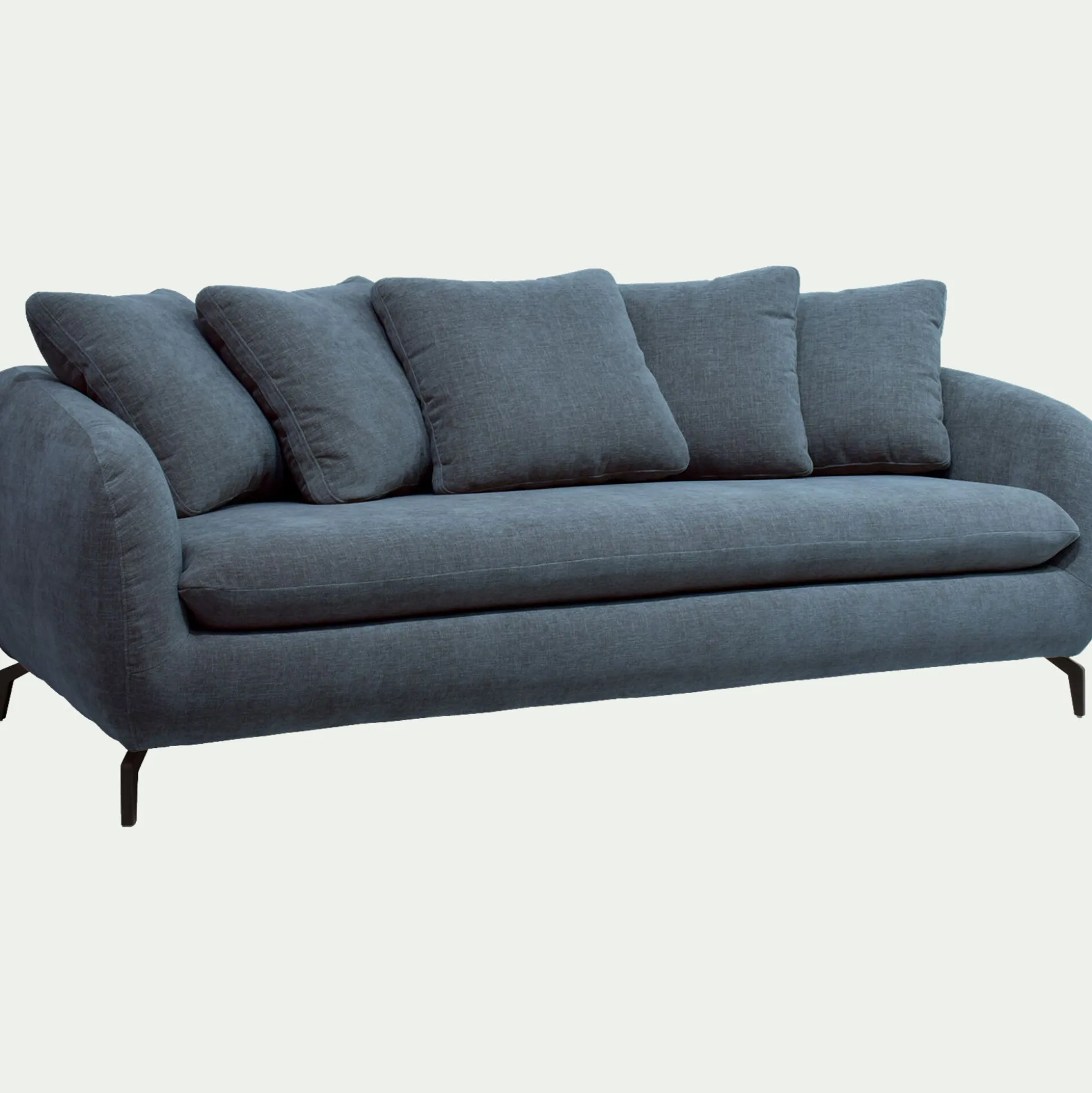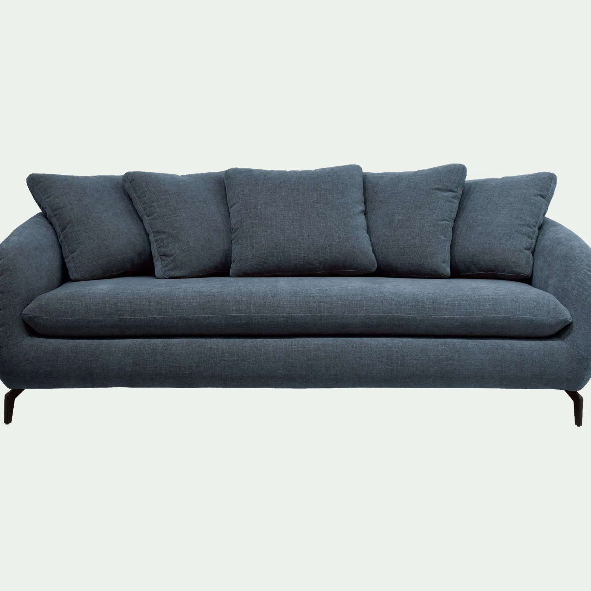 Un joli canapé convertible en tissu pour profiter agréablement de votre salon. Un look contemporain et accueillant, sublimé par un piétement original en acier noir. Vous apprécierez la forme du dossier et des accoudoirs qui vous offrent un maintien optimal de votre dos pour un confort d’assise exceptionnel. Un canapé fabriqué en France, dans des ateliers proches de la ville de Bourge, qui incarne l’excellence du savoir-faire français. Un coloris bleu qui apporte une note lumineuse et tendance à votre déco de salon.