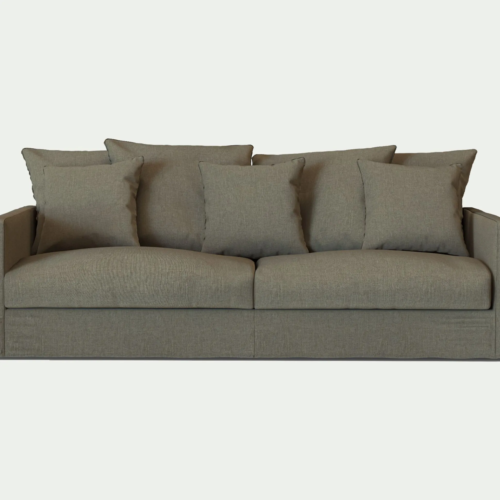 Découvrez ce charmant canapé 4 places convertible en lin et en viscose qui allie style et confort. En effet, Simona est un canapé fabriqué en Italie qui offre une assise confortable et des lignes toutes en rondeur pour un canapé qui a de l’allure tout en invitant à la détente. Convertible, il est doté d’un matelas en 160x185cm et d’un sommier électro-soudé afin de profiter d’un couchage d’appoint de qualité. Aménagez une pièce de vie tendance et accueillante grâce à ce beau canapé au style affirmé et raffiné. Ici en vert cèdre, une couleurqui évoque la nature et se combine avec tous les styles de déco et de mobilier.
