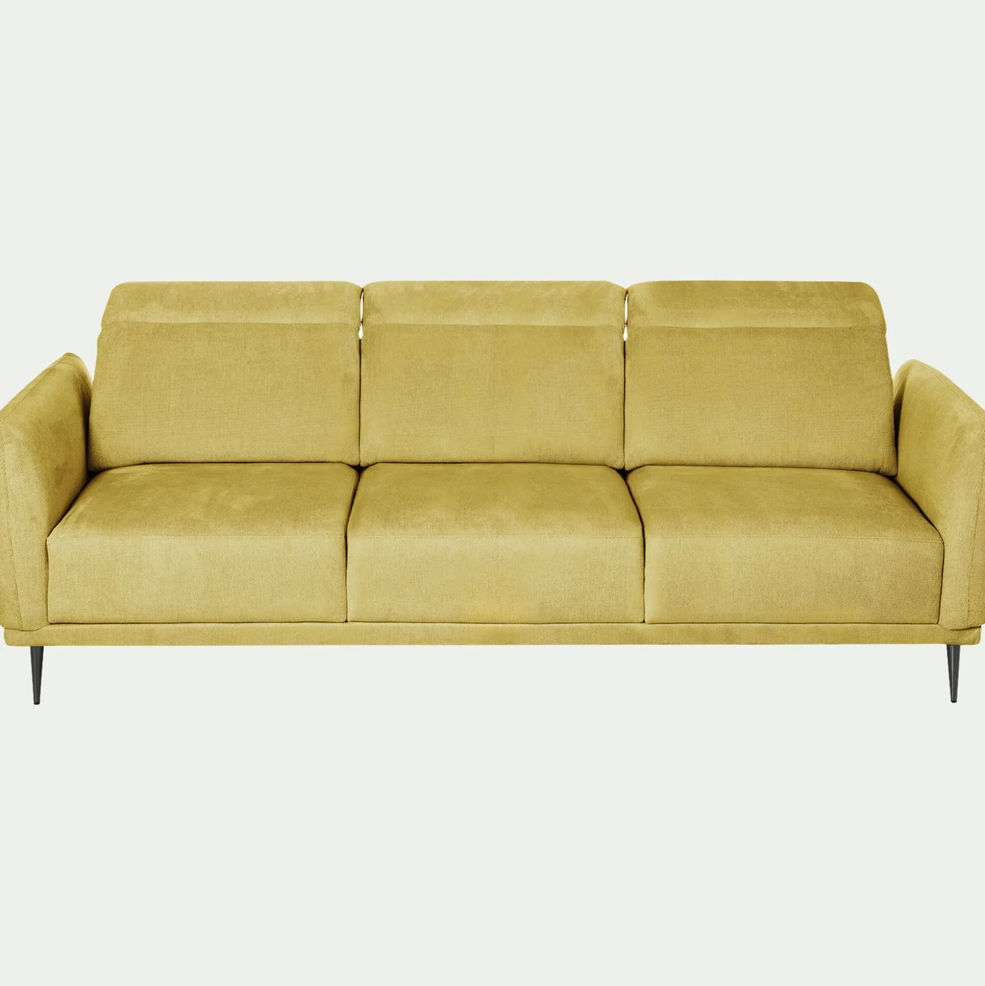 Fabriqué en Roumanie, le canapé 4 places Marko séduit par son design aux lignes nettes et son coloris intemporel jaune argan, facile à intégrer dans tous les styles d’intérieur. Pensé pour conjuguer esthétique et confort, il propose une assise généreuse et modulable grâce à son système de dossier coulissant, qui permet d’ajuster la profondeur selon les envies. Les têtières relevables viennent parfaire l’ensemble, offrant un soutien idéal pour les moments de lecture ou les soirées cinéma. Élégant et fonctionnel, ce canapé droit s’impose naturellement comme la pièce centrale du salon. Un canapé de caractère, conçu pour durer et pour accompagner tous les instants de détente du quotidien.