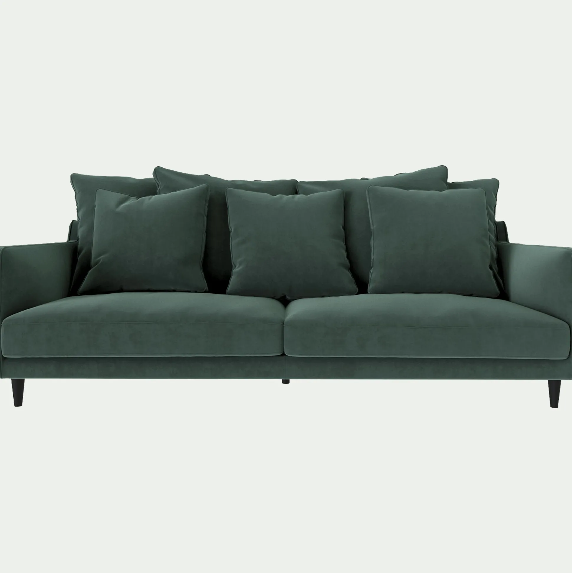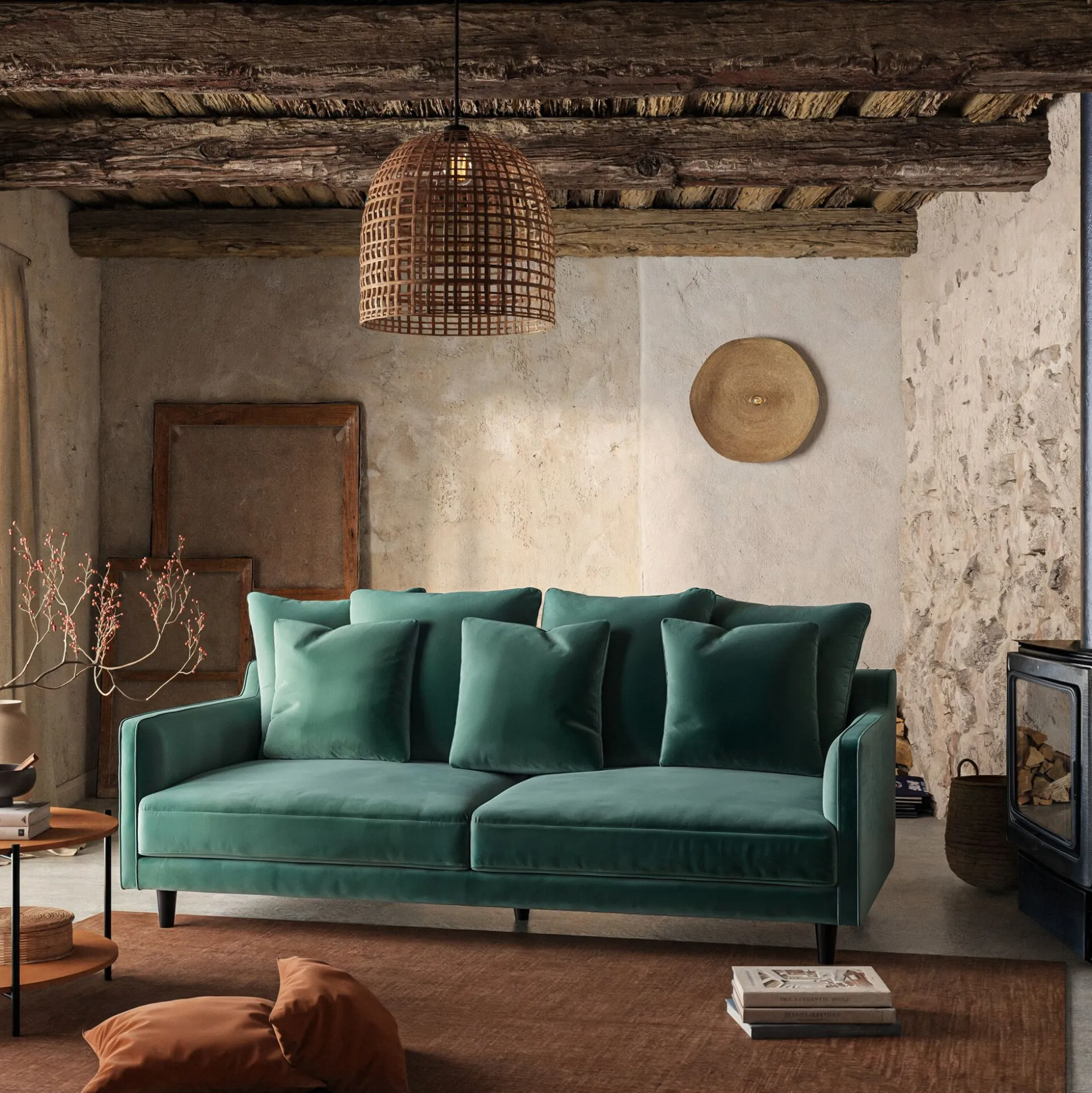 Ce canapé droit 4 places incarne l’élégance italienne dans une version chaleureuse et lumineuse. Revêtu du tissu velvet, au toucher charnu et à l’apparence de velours, il séduit par sa texture délicate et sa douceur exceptionnelle. Son coloris vert sauge adoucit la pièce et insuffle un vent apaisant au décor. Fabriqué à la main en Italie, il témoigne d’un savoir-faire artisanal raffiné. L’assise, généreusement garnie de plumes d’oie, offre un confort moelleux et enveloppant. Monté sur des pieds en hêtre massif, ce modèle entièrement déhoussable marie esthétique et praticité avec brio. Une pièce forte et rayonnante pour sublimer le salon.