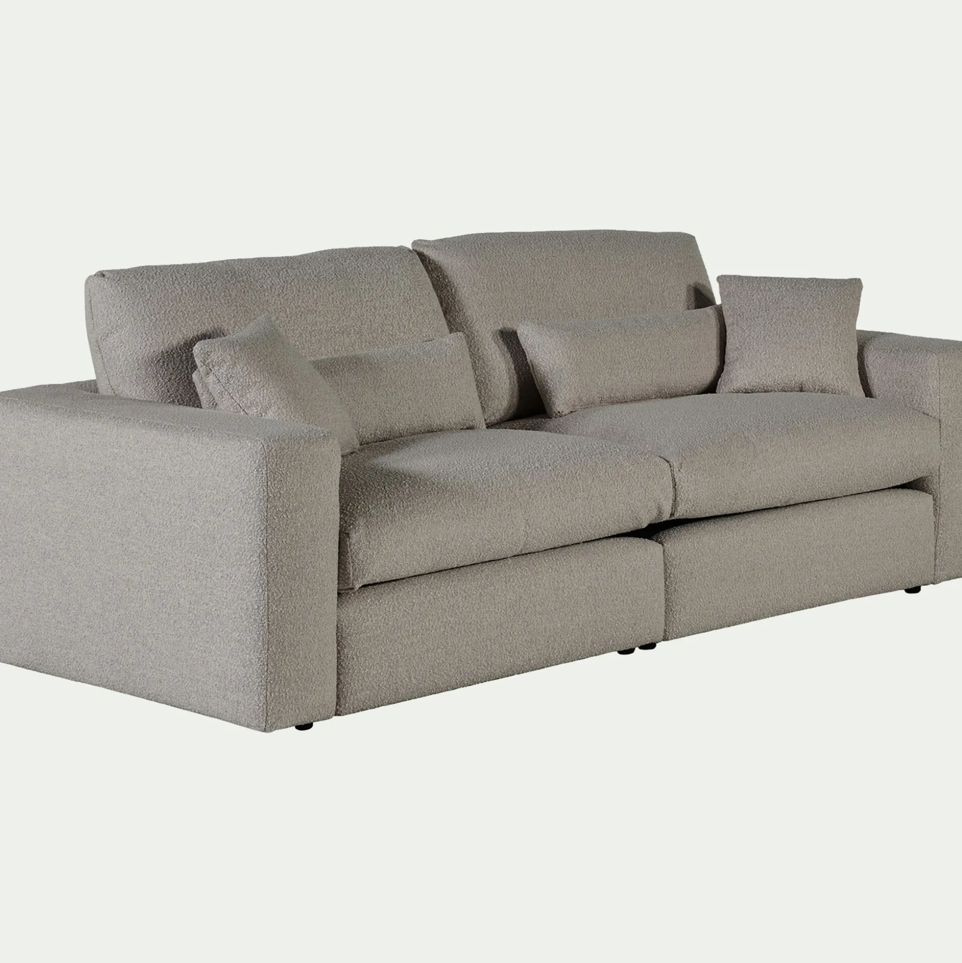 Le canapé Piuma est idéal pour se prélasser dans votre salon. Avec ses grandes assises, ce canapé 5 places fixe en tissu bouclette vous offre un confort exceptionnel. Il vous permet de vous détendre au coeur de coussins moelleux qui vous font sentir dans un nuage de douceur, une sensation renforcée par son tissu délicat. Vous pourrez ainsi recevoir famille et amis à partager des soirées conviviales lors d’un moment apaisant. Ce canapé fixe de couleur gris clair apporte également une touche design moderne et élégante à votre salon. Son tissu bouclette donne un côté cocooning qui vous permet de transformer votre pièce en un espace chaleureux. Piuma fait ainsi rimer confort avec esthétisme et élégance.