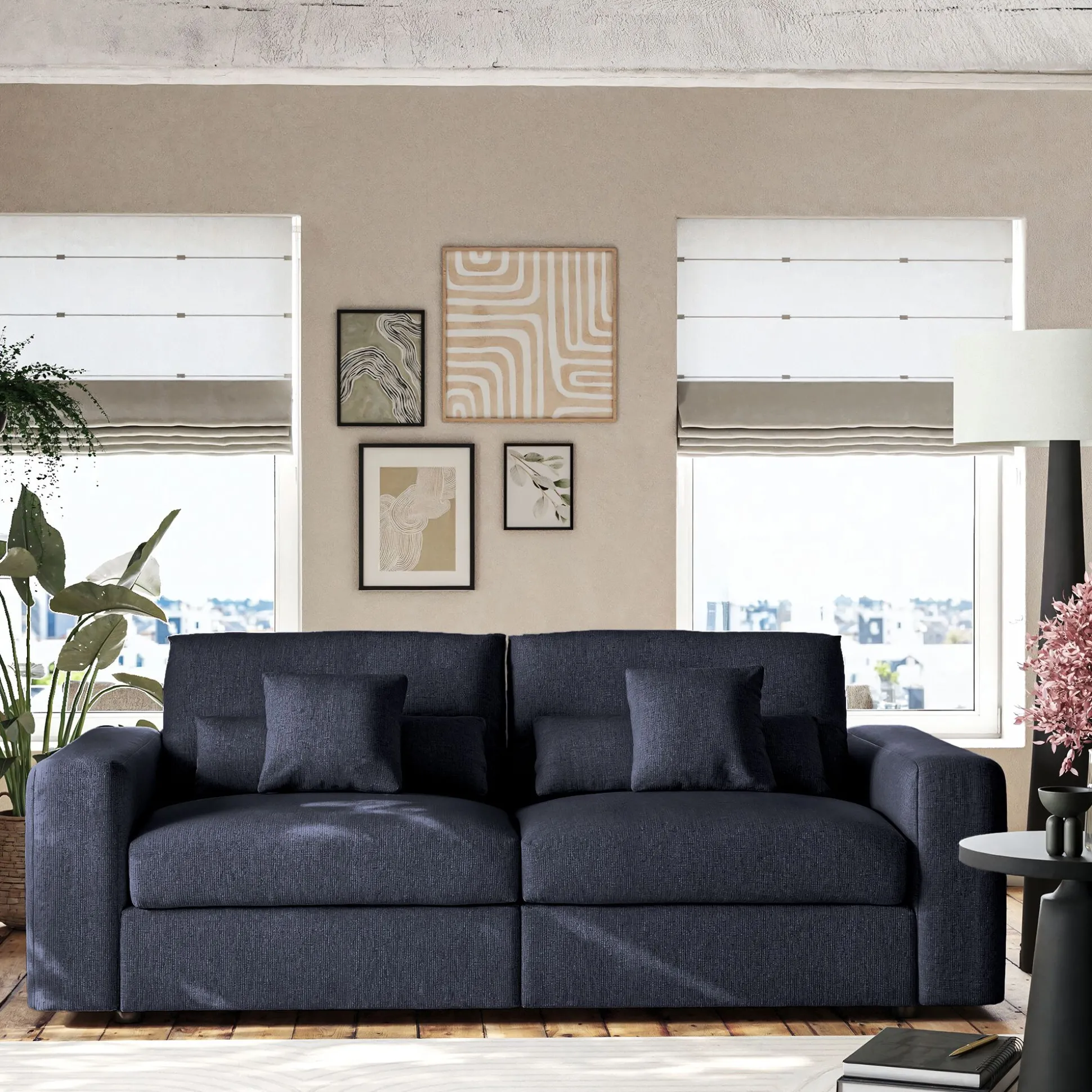 Le canapé Piuma est idéal pour se prélasser dans votre salon. Avec ses grandes assises, ce canapé 5 places fixe en tissu chenille vous offre un confort exceptionnel. Il vous permet de vous détendre au cœur de coussins moelleux qui vous font sentir dans un nuage de douceur, une sensation renforcée par son tissu délicat. Vous pourrez ainsi recevoir famille et amis à partager des soirées conviviales lors d’un moment apaisant. Ce canapé fixe de couleur bleu marine apporte également une touche design moderne et élégante à votre salon. Son tissu chenille donne un côté cocooning qui vous permet de transformer votre pièce en un espace chaleureux. Piuma fait ainsi rimer confort avec esthétisme et élégance.