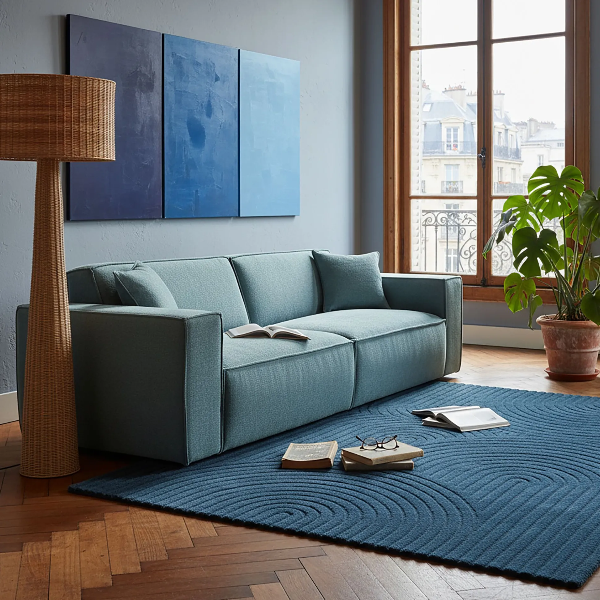 Avec son design épuré et son élégance naturelle, ce canapé droit 5 places s’impose comme une pièce centrale du salon. Son revêtement en tissu bleu égaye la décoration et s’harmonise avec tous les styles de décoration, du contemporain au plus classique. Conçu en Ukraine, il allie qualité et confort grâce à sa structure en pin massif et son assise dotée de ressorts Nosag, réputés pour leur durabilité et leur souplesse. Son assise généreuse et son dossier accueillant créent un espace cosy, parfait pour des instants de détente ou des moments de convivialité. Idéal pour aménager un salon chaleureux et moderne, ce canapé fixe séduit par son allure sobre et intemporelle, permise grâce à la qualité du tissu genesis.