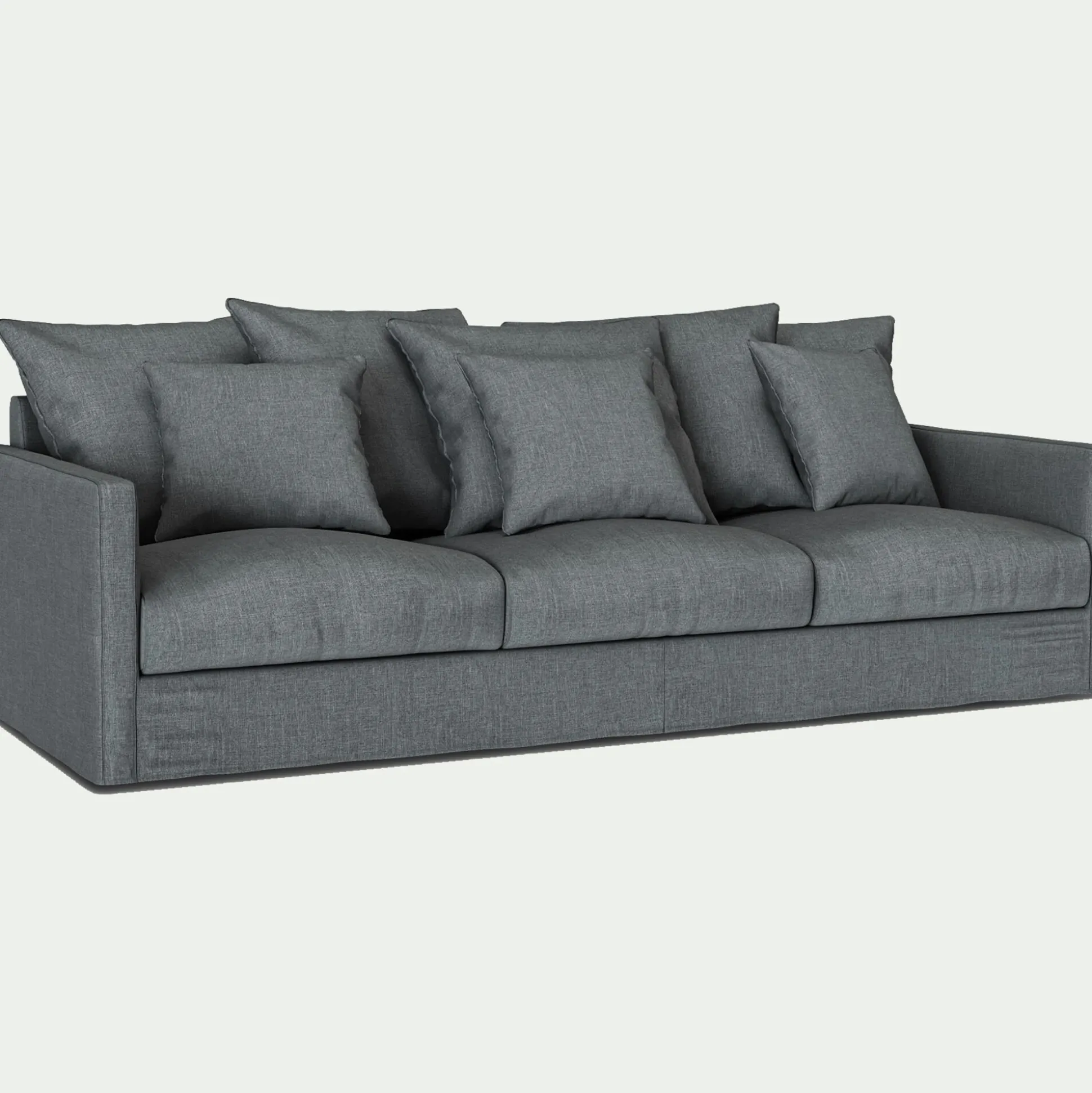 Craquez pour Simona, un canapé 5 places fixe en lin et en viscose dont le style authentique et intemporel viendra meubler avec raffinement votre pièce de vie. Ici en gris ardoise, une couleur sobre et classique qui permet de s’accorder facilement avec tous les styles de décoration, ce grand canapé, fabriqué en Italie, est parfait pour s’installer en famille dans le séjour. Comme une véritable invitation à la détente, il offre un excellent confort grâce à la présence d’un coussinage généreux et d’une assise moelleuse pour savourer des instants de partage dans votre salon.