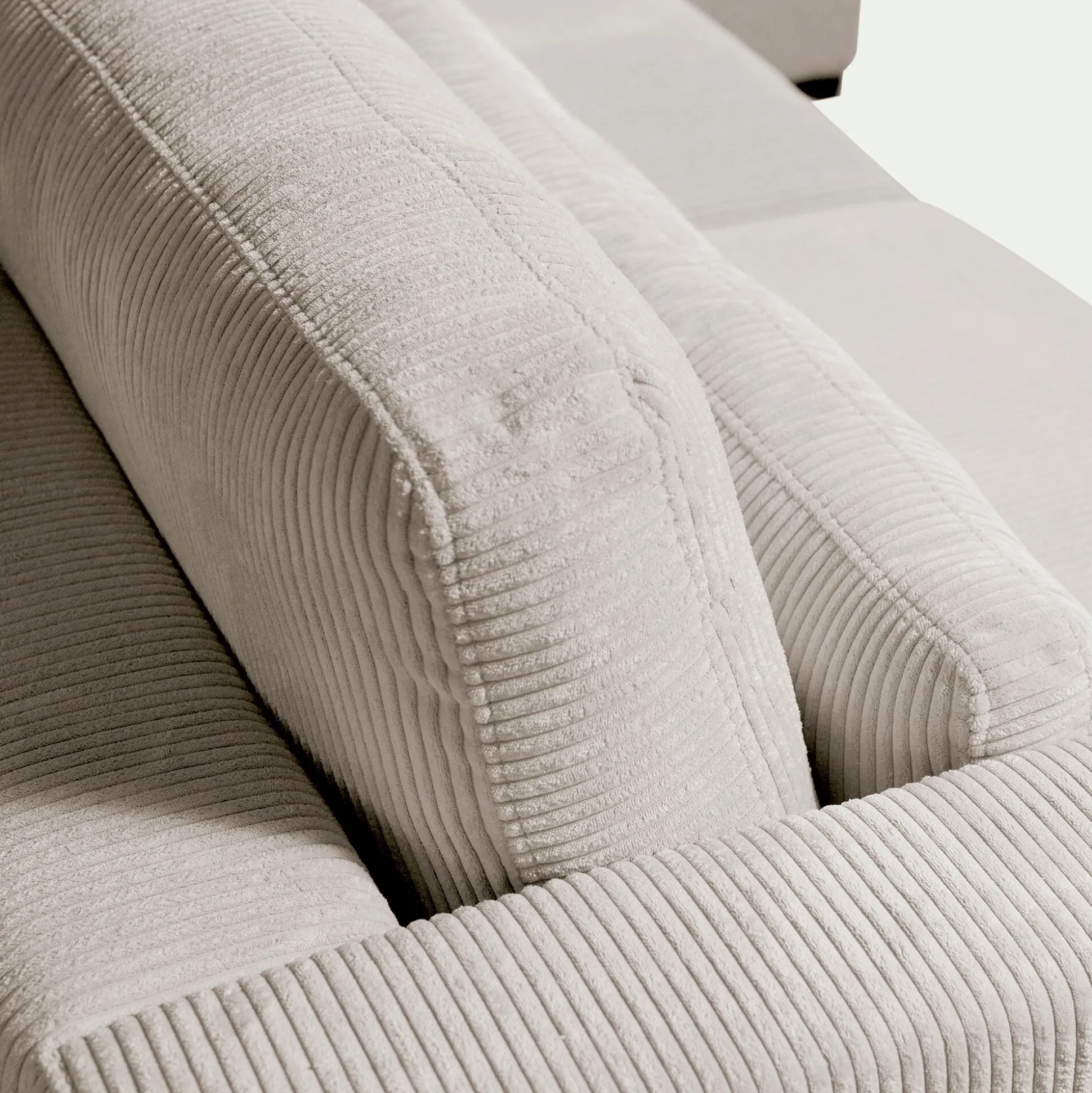 Ce canapé extrêmement confortable sera parfait pour vous relaxer. Fabriqué en Europe, il constitue le canapé fixe idéal pour recevoir vos convives grâce à ses 5 places assises. Son revêtement en velours côtelé doux apportera une touche chaleureuse à l’ensemble de votre salon. Sa couleur beige, ajoutera une touche de modernité à votre intérieur. Le canapé droit fixe sublimera votre salon.