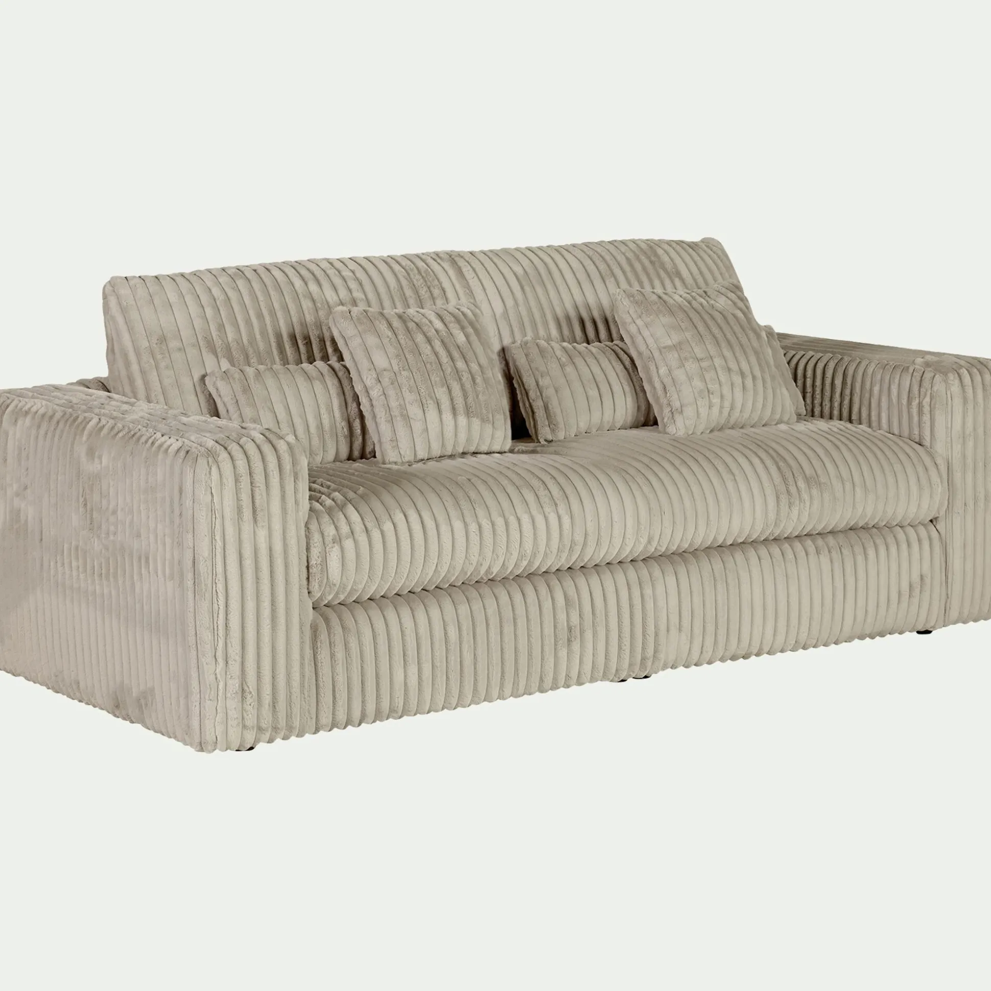 Avec son généreux format 5 places, ce grand canapé fixe invite à la détente et à la convivialité. Son revêtement en tissu côtelé XXL enveloppe l’espace d’une douceur irrésistible, offrant un effet ultra cocooning et réconfortant. Son coloris blanc ventoux illumine le salon et sublime chaque ambiance avec élégance. Pensé pour le quotidien, ce canapé droit 5 places est doté d’un dossier et d’une assise déhoussables, garantissant un entretien facile. Une pièce de caractère, fabriquée en Belgique, qui conjugue style et confort avec brio.