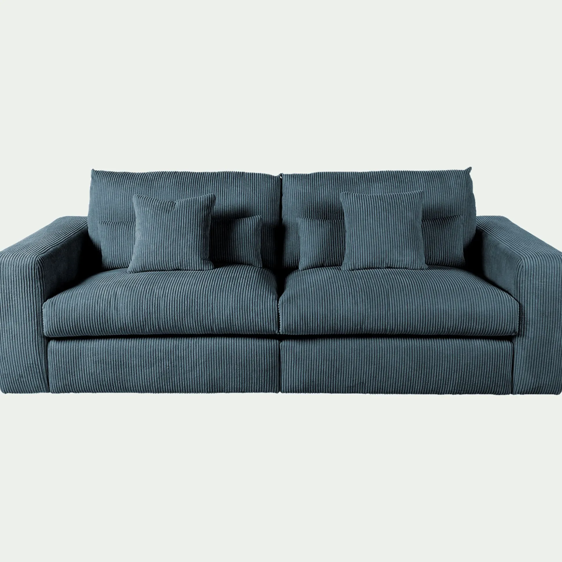 Le canapé Piuma est idéal pour se prélasser dans votre salon. Avec ses grandes assises, ce canapé d’angle droit en velours côtelé vous offre un confort exceptionnel. Il vous permet de vous détendre au coeur de coussins moelleux dans un nuage de douceur renforcé par son tissu délicat. Vous pourrez ainsi recevoir famille et amis lors d’un moment apaisant. Ce canapé fixe 5 places de couleur bleu apporte également une touche design moderne et élégante à votre salon. Son velours côtelé donne un côté cocooning qui vous permet de transformer votre pièce en un espace chaleureux.