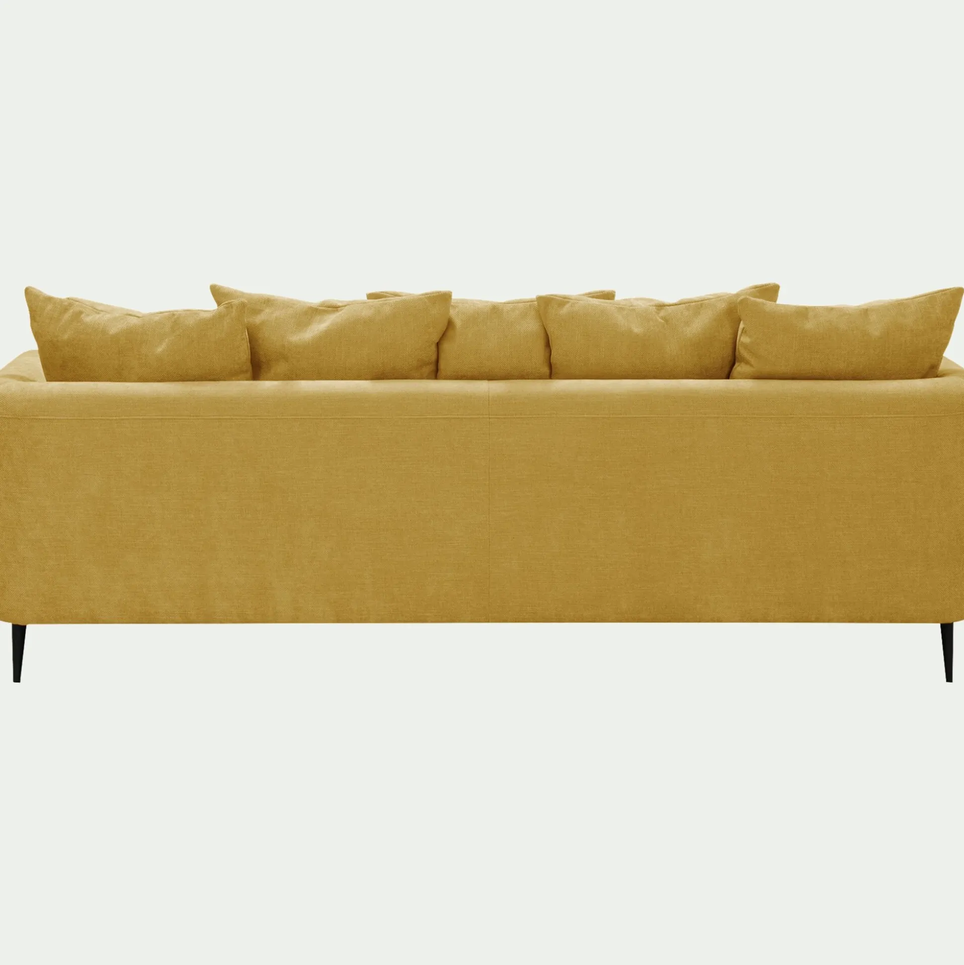 Avec sa découpe originale et asymétrique sur le côté gauche, ce canapé 5 places impose une allure unique et raffinée dans le salon. Son design singulier se marie à l’élégance discrète de son coloris jaune argan, doux et intemporel, pour sublimer la décoration intérieure. Son décroché crée une assise plus profonde, idéale pour savourer des instants de détente dans un confort absolu. À la fois atypique et sophistiqué, ce canapé fixe en tissu devient une pièce maîtresse du séjour et ne manquera pas de séduire les convives par son charme distinctif.