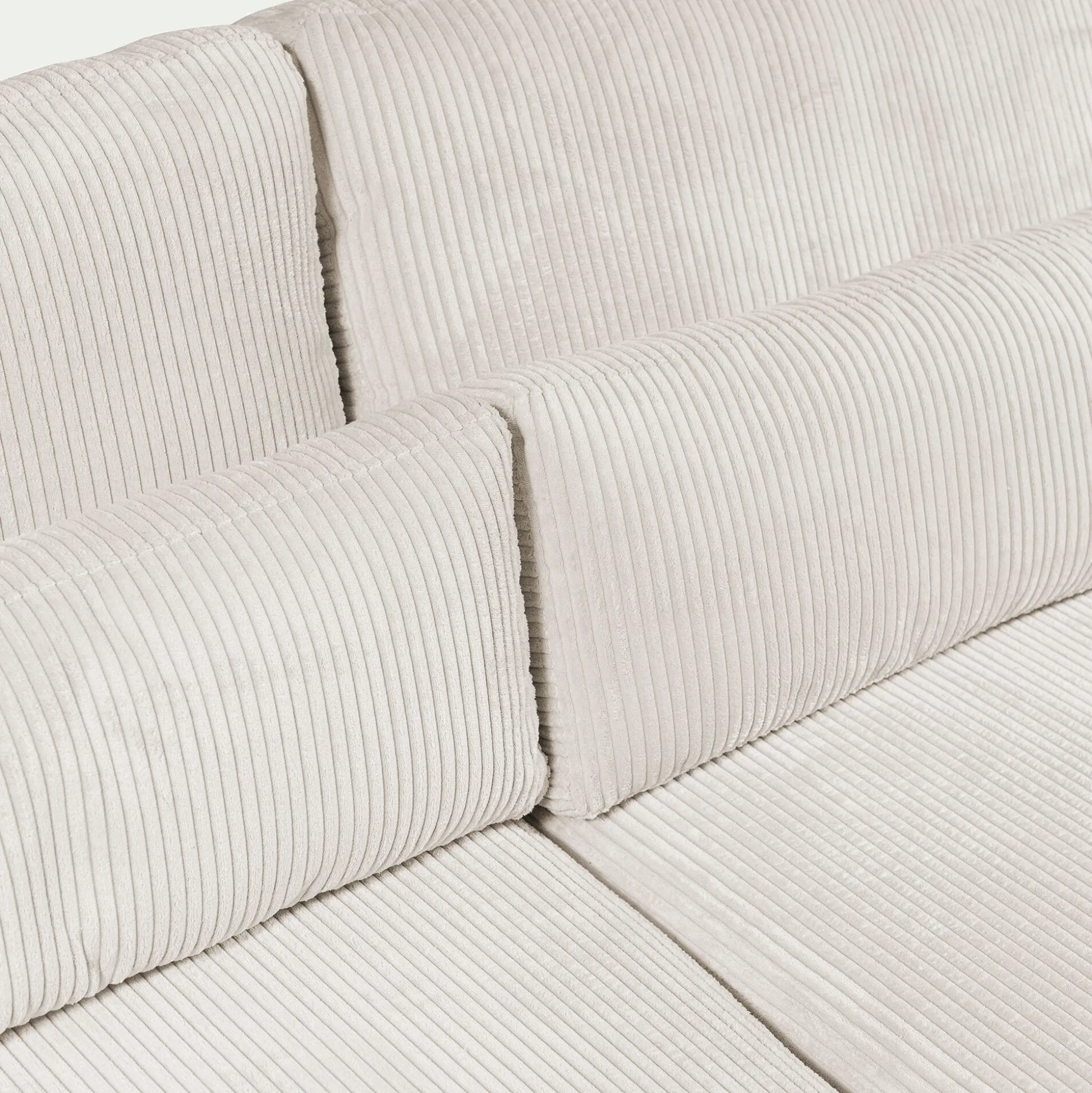 Spacieux et raffiné, le canapé d’angle Batis avec angle à gauche transforme le salon en un espace convivial et confortable. Sa chaise longue offre un espace idéal pour s’allonger et savourer un véritable instant de repos. En velours côtelé, il insuffle un vent de douceur et d’élégance dans le salon. Son coloris beige illumine la pièce et crée un espace où le bien-être règne. Conçu pour durer, ce canapé fixe repose sur une structure en bois massif, garantissant solidité et stabilité. Il s’impose comme l’élément central du séjour, invitant au partage et à la relaxation.