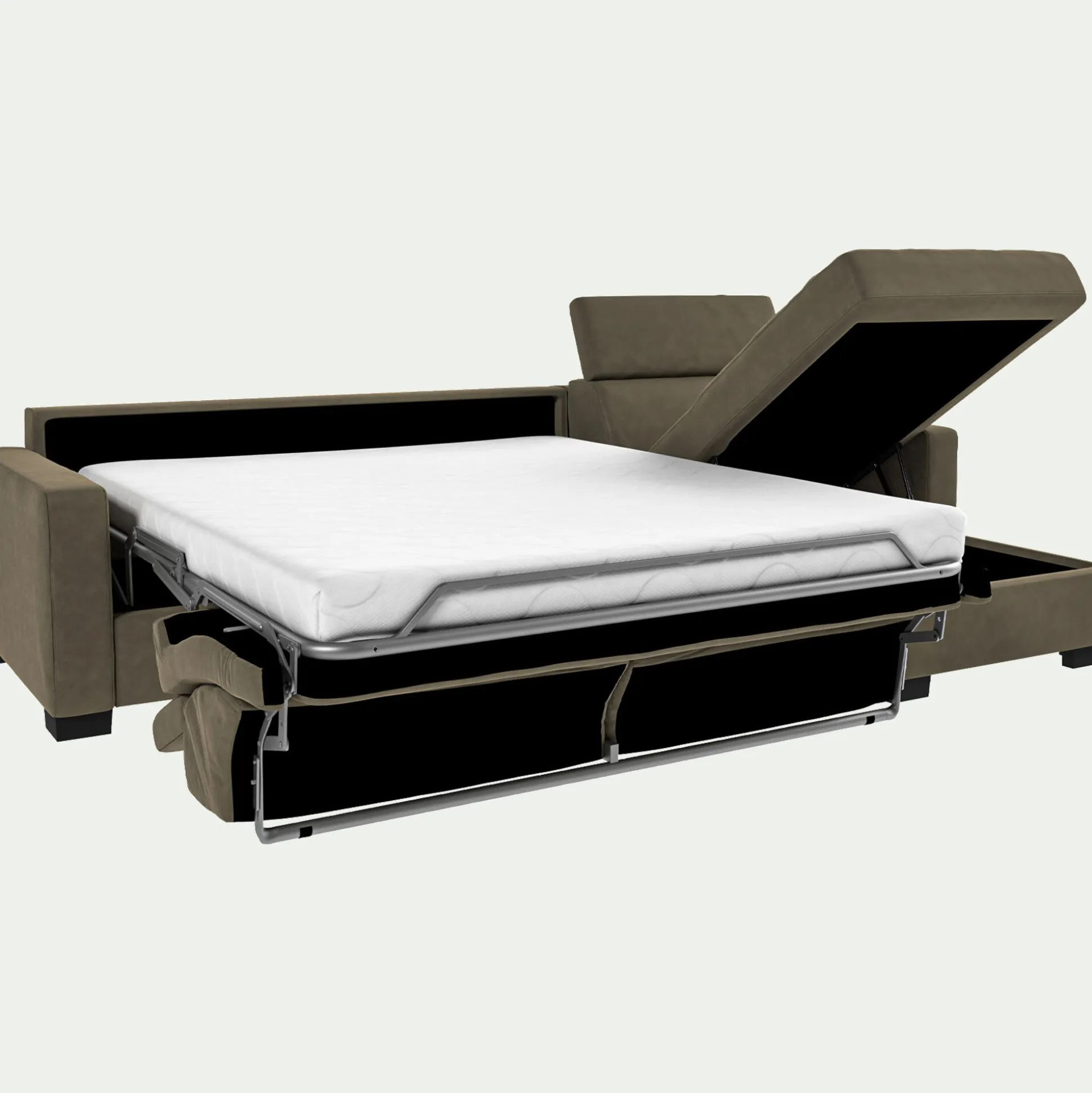 Type de canapé : Le canapé convertible ouvert mesure L.271 x P.205 cm avec un matelas de 140×195 cm.