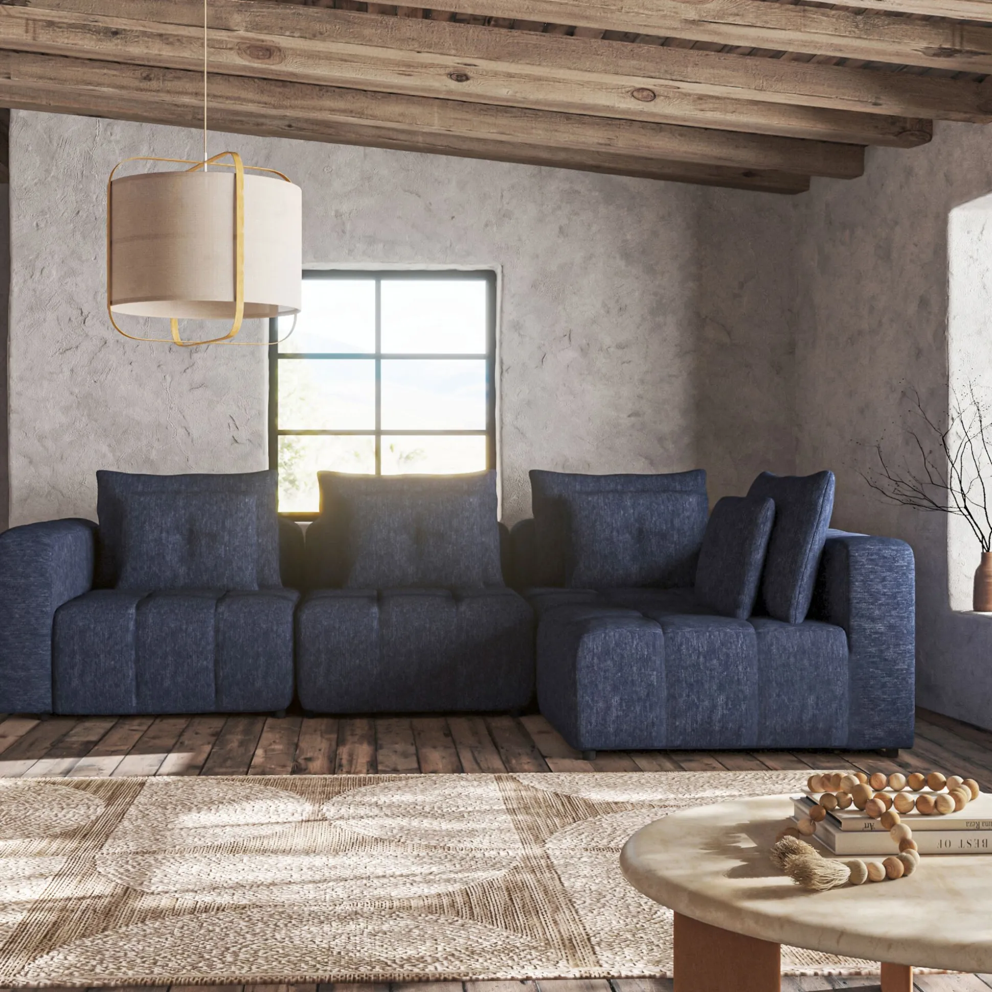 Laissez-vous séduire par le design de ce canapé d’angle en tissu Benjo, fabriqué en Belgique. Son coloris bleu marine et son caractère modulable en font une pièce maîtresse à la fois élégante et conviviale, parfaite pour les moments de détente. Son tissu de haute qualité et ses lignes épurées allient le charme de l’artisanat belge à une fonctionnalité optimale pour votre salon, vous permettant de le configurer selon vos envies.