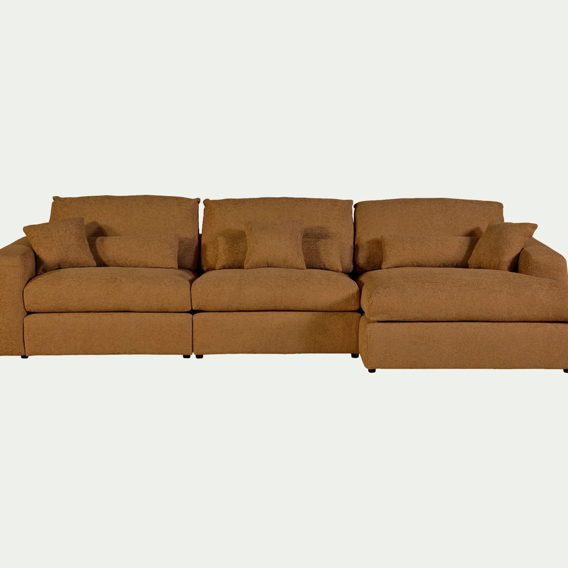 Le canapé Piuma est idéal pour se prélasser dans votre salon. Avec ses grandes assises, ce canapé d’angle droit en tissu chenille vous offre un confort exceptionnel. Il vous permet de vous détendre au coeur de coussins moelleux dans un nuage de douceur renforcé par son tissu délicat. Vous pourrez ainsi recevoir famille et amis lors d’un moment apaisant. Ce canapé fixe de couleur jaune argan apporte également une touche design moderne et élégante à votre salon. Son tissu chenille donne un côté cocooning qui vous permet de transformer votre pièce en un espace chaleureux.