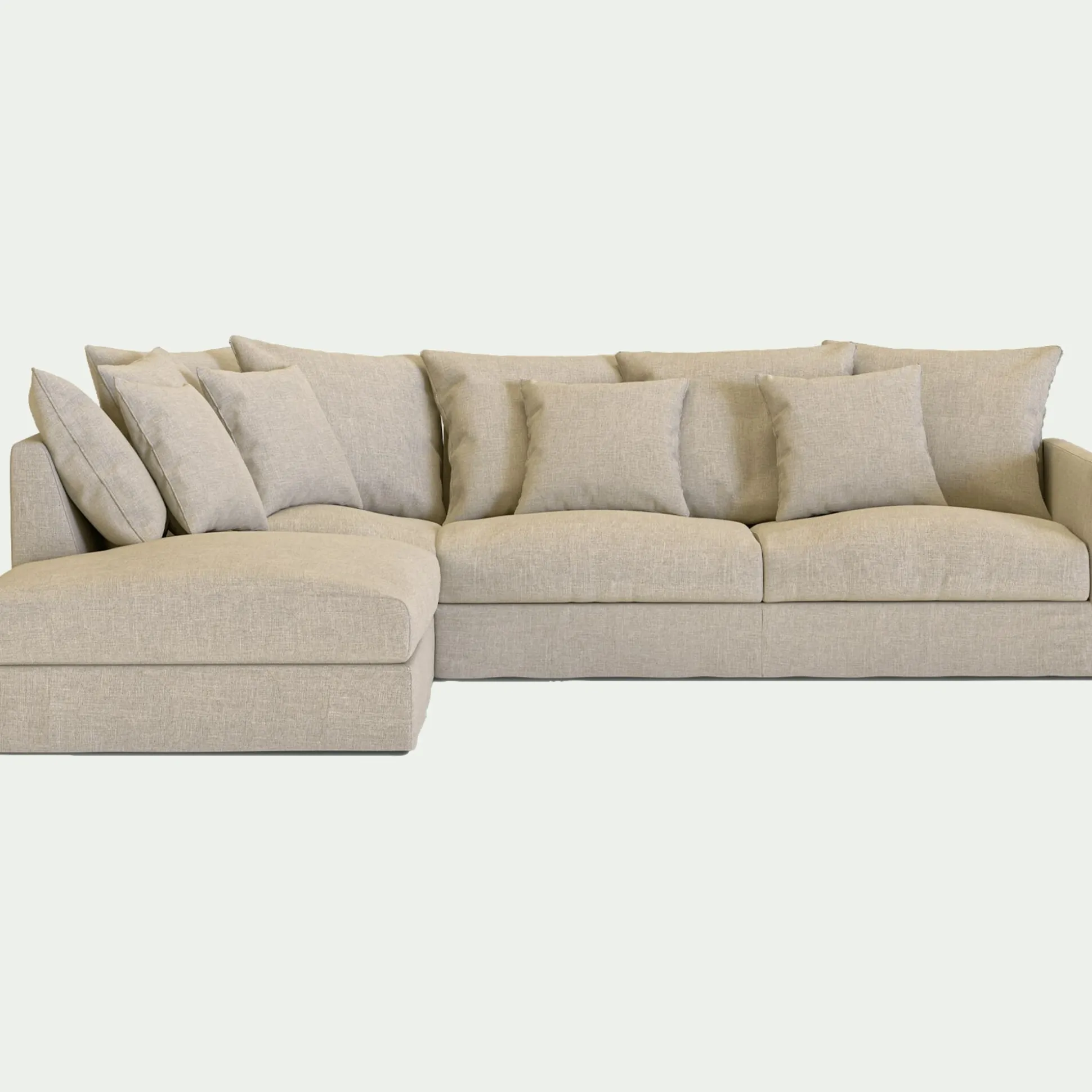 Un joli canapé fixe en tissu mix pour profiter agréablement de votre salon. En effet, ce canapé est composé de lin et de viscose. Un look contemporain et accueillant, sublimé par un piétement original. Vous apprécierez le confort d’assise que vous offrent le dossier et les coussins de ce canapé. Un canapé de qualité fabriqué en Italie. Il arbore un coloris beige alpilles qui apporte une note douce et raffinée à la décoration de votre intérieur.