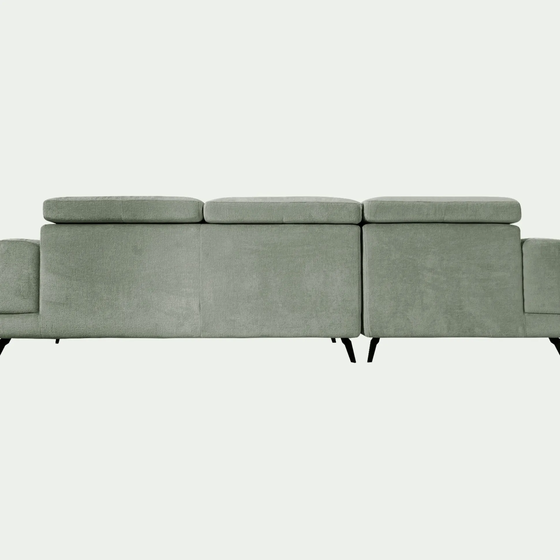 Choisissez un canapé d’angle gauche à la fois design et pratique pour votre maison. Le canapé Palermo, avec son look épuré qui rappelle les modèles italiens, est très esthétique, mais il n’en reste pas moins un canapé fonctionnel. Ses têtières réglables et sa fonction avance-recule pour agrandir l’assise, vous permettent de moduler l’assise et le confort. Vous disposerez d’un canapé avec une assise plus droite pour des moments conviviaux autour d’un apéritif ou encore de moments de détente grâce à une assise plus allongée. Fabriqué en Europe, il garantit une durabilité et une résistance exceptionnelle. En tissu doux vert, il s’adapte à tous les intérieurs pour une atmosphère sophistiquée et élégante.