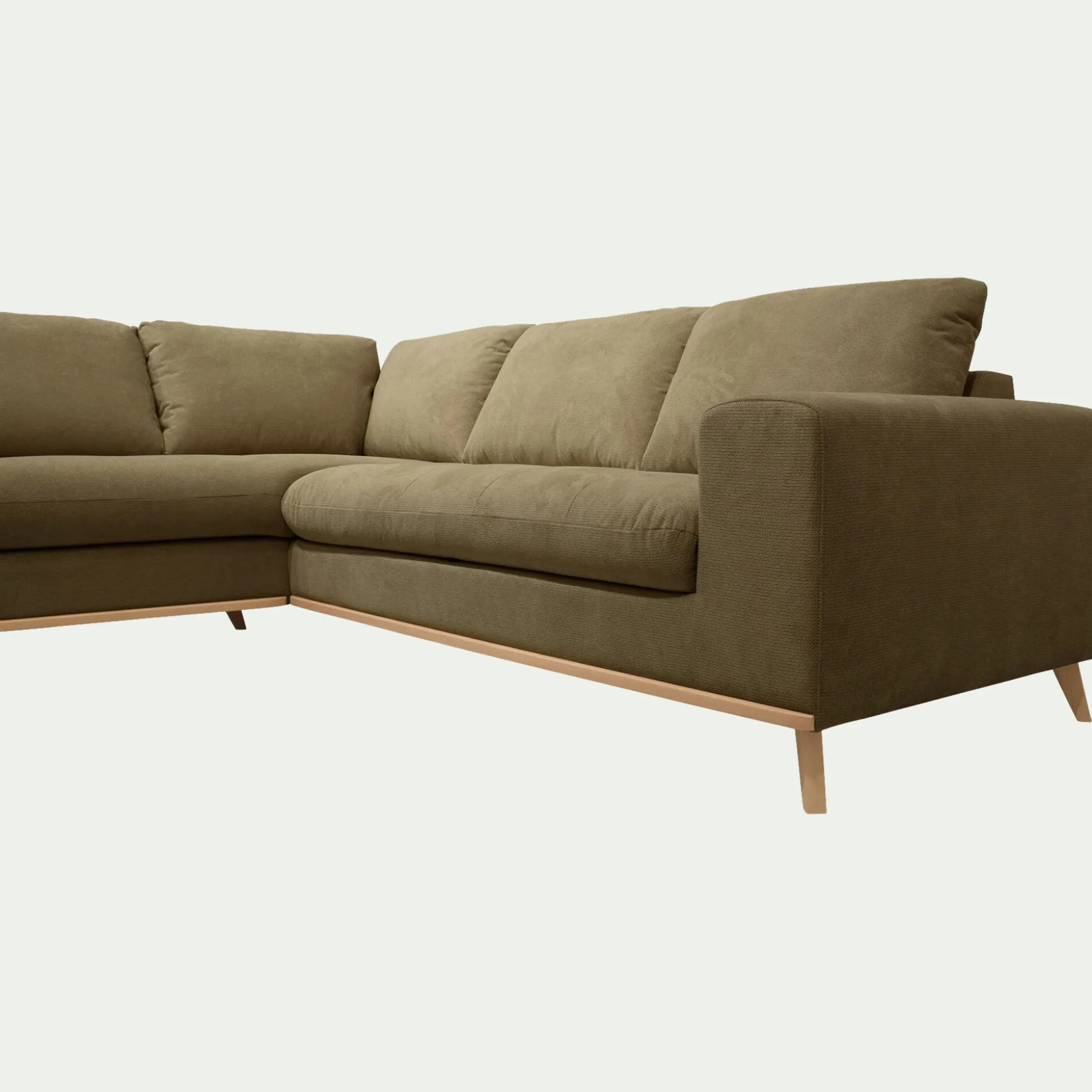 Le canapé d’angle Capia allie confort, style et praticité. Il offre une assise spacieuse pour 5 personnes grâce à son angle à gauche, large et profond pour des moments de détente incomparables. Ce canapé fixe est revêtu d’un tissu Crown dans notre coloris vert cèdre, riche et élégant. Son tissage certifié Oeko-Tex apporte douceur et résistance, parfait pour une utilisation quotidienne. Son design repose sur une structure en pin massif et des pieds en hêtre massif, gage de solidité et de durabilité. Les coussins de dos déhoussables facilitent l’entretien. Une fabrication française qui conjugue esthétique et fonctionnalité.