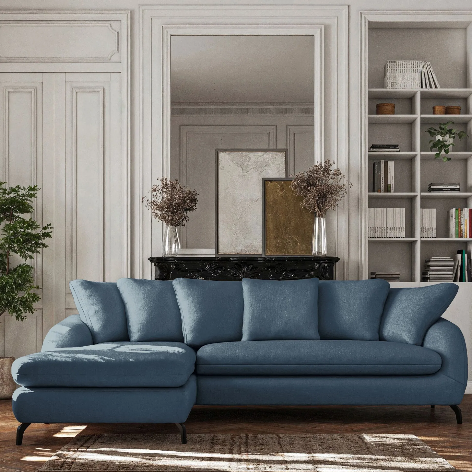 Un joli canapé d’angle gauche en tissu pour profiter agréablement de votre salon. Un look contemporain et accueillant, sublimé par un piétement original en acier noir. Vous apprécierez la forme du dossier et des accoudoirs qui vous offrent un maintien optimal de votre dos pour un confort d’assise exceptionnel. Un canapé fabriqué en France, dans des ateliers proches de la ville de Bourge, qui incarne l’excellence du savoir-faire français. Un coloris bleu qui apporte une note citadine et raffinée à votre décoration de salon.
