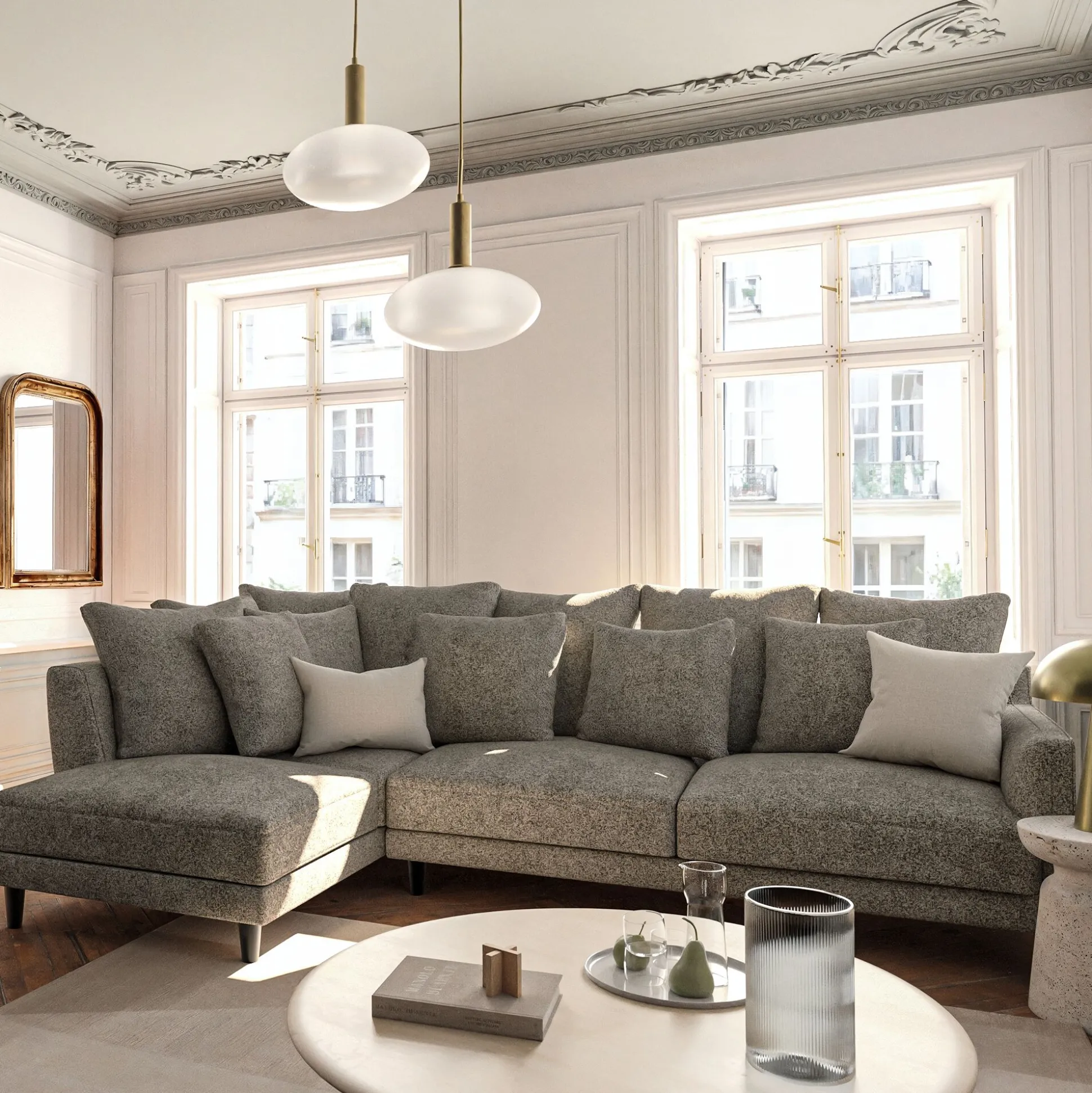 Majestueux et raffiné, le canapé d’angle Lenita avec angle à gauche incarne l’élégance du style Second Empire avec une touche contemporaine. Fabriqué à la main en Italie, dans la région de Farra di Soligo, il témoigne d’un savoir-faire traditionnel d’exception. Son tissu genesis dans notre coloris beige alpilles, doux et intemporel, s’harmonise avec tous les intérieurs, tandis que ses lignes généreuses et ses coussins moelleux invitent à la détente. Avec son assise profonde et son rembourrage en plumes d’oie, ce grand canapé fixe offre un confort exceptionnel pour accueillir famille et amis. Sa structure robuste en bois renforcé de sapin massif, issu de forêts certifiées FSC®, garantit une grande longévité. Entièrement déhoussable, il se nettoie facilement. Un canapé 5 places qui conjugue élégance, confort et durabilité, et qui deviendra sans conteste la pièce maîtresse du séjour.