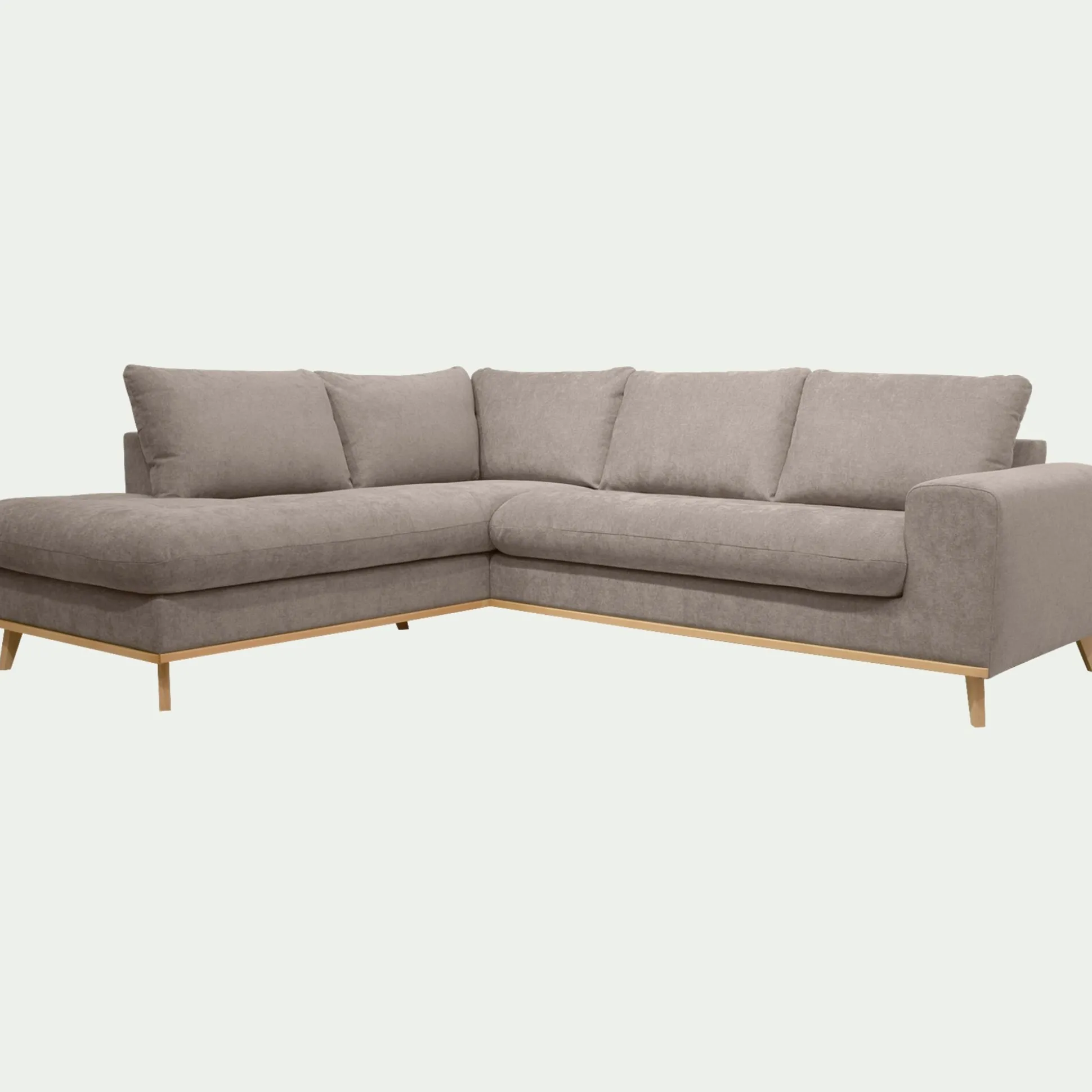 Le canapé d’angle gauche Capia allie confort, style et praticité. Il offre une assise spacieuse pour 3 personnes. Ce canapé est alors revêtu d’un tissu storm taupe, profond et élégant. Son tissage apporte douceur et résistance, parfait pour une utilisation quotidienne. Son design repose sur une structure en pin massif et des pieds en hêtre massif, gage de solidité et de durabilité. Les coussins de dos déhoussables facilitent l’entretien. Une fabrication française qui conjugue esthétique et fonctionnalité.