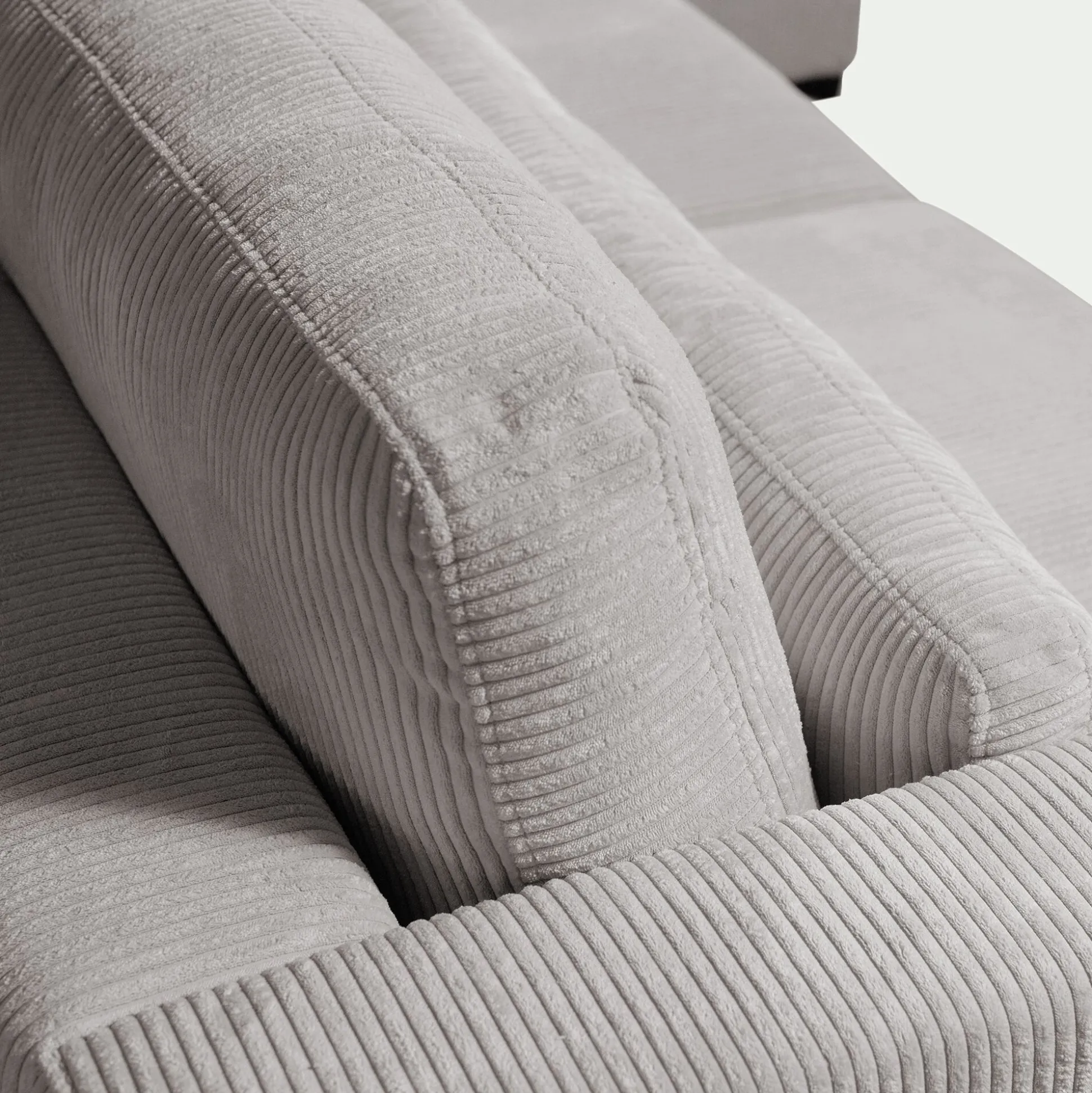 Ce canapé d’angle avec méridienne à droite transforme le salon en un véritable espace bien-être. Son grand format accueille toute la famille ou permet de s’allonger entièrement pour une détente absolue. Revêtu d’un velours côtelé dans un coloris gris borie, il séduit par son toucher doux et soyeux, reflétant délicatement la lumière pour une touche d’élégance. Son assise profonde repose sur une structure en bois massif et des ressorts qui garantissent un maintien souple et durable. Pratique, ses coussins de dossier et d’assise sont déhoussables pour un entretien facilité. Généreux et élégant, ce grand canapé fixe insuffle du caractère à la pièce et s’impose comme un allié incontournable des instants de détente et de convivialité.