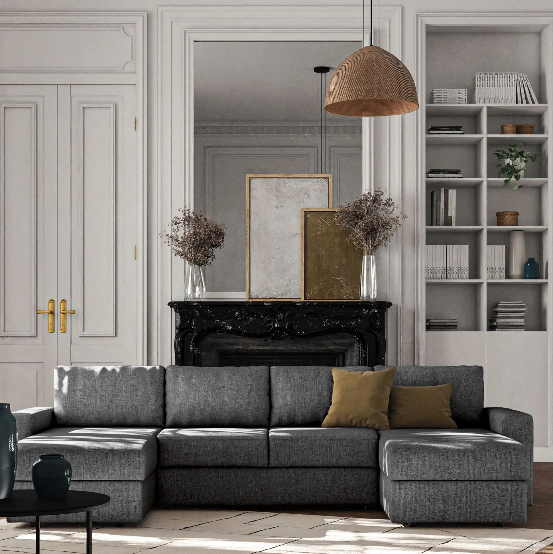 Un élégant canapé en tissu combiné avec la chaise longue de la même gamme pour former un canapé en U pour votre salon. Son gris restanque apporte une touche urbaine raffinée et tendance à votre déco d’intérieur. Un canapé confortable doté d’épais coussins pour une assise d’une grande qualité. Entièrement conçu en France, ce canapé incarne le savoir-faire et le charme à la Française. Il vous offre également un grand coffre de rangement, idéal pour disposer un plaid, des couvertures et des oreillers. Ce canapé s’ouvre facilement et vous permet d’obtenir un lit pour vos convives. Un couchage occasionnel de grande taille, particulièrement utile. Un canapé déco pour se détendre et passer d’agréables moments entre amis ou en famille.